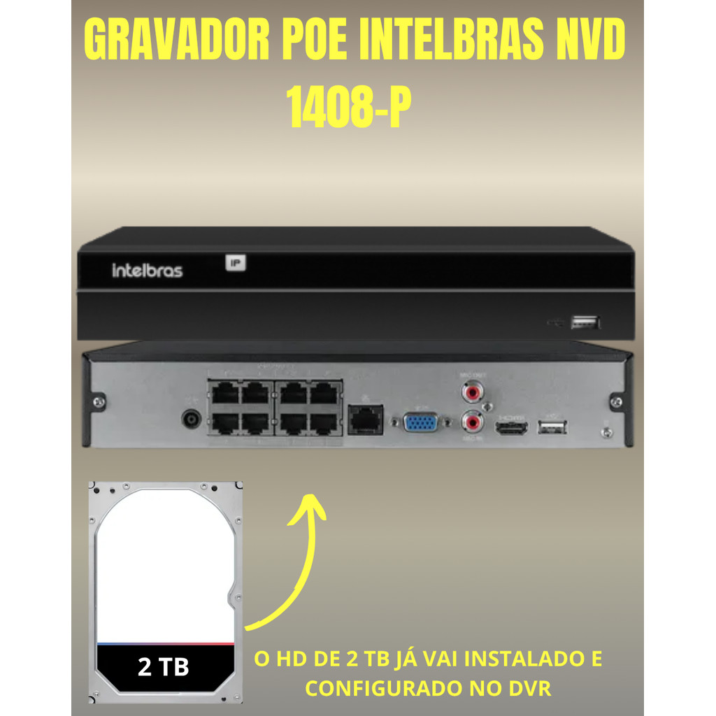 Kit CFTV Intelbras NVR 1408P 5 Câmeras IP e HD 2TB