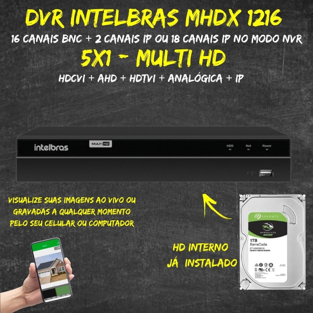 Kit Intelbras 16 Câmeras Vhc 1120 Dvr 16 Canais 1t 200m Cabo