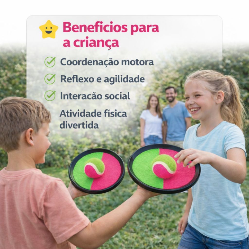 Kit 2 Raquetes Velcro + Bola Esporte Bateu Colou Infantil Jogos para Praia