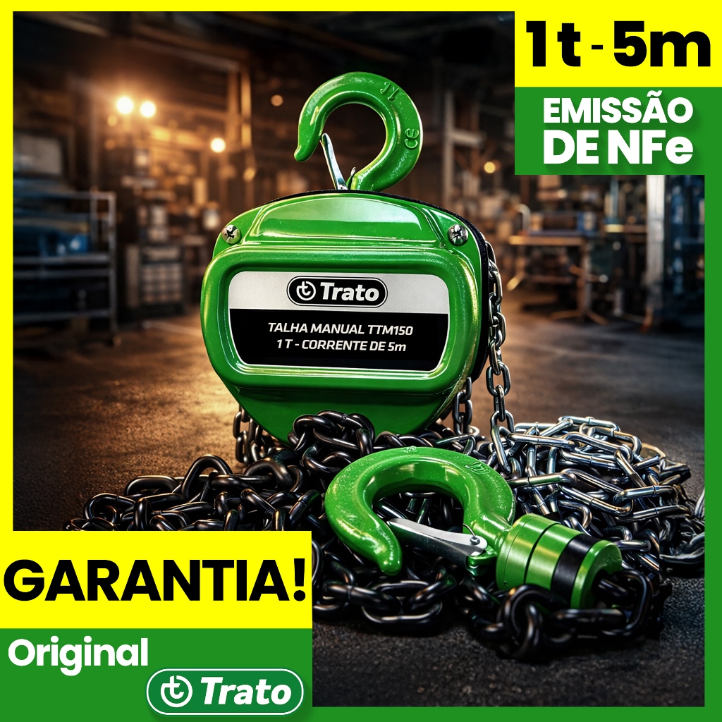 Talha Manual 1 Tonelada 1000 Kg Com Corrente 5 Metros Trato