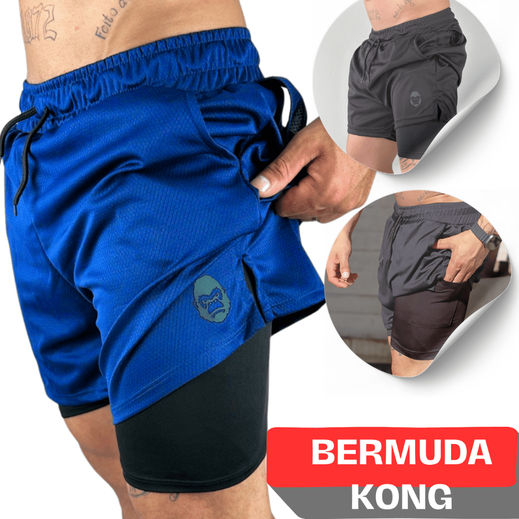 Bermuda de Compressão Masculina para Treino 2 em 1 Kong