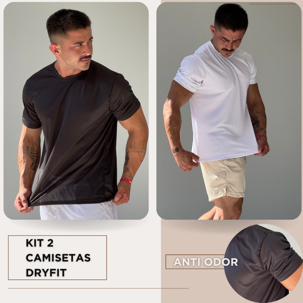 Kit de 2 Camisetas Masculinas de Performance Avançada Dryfit para Corrida