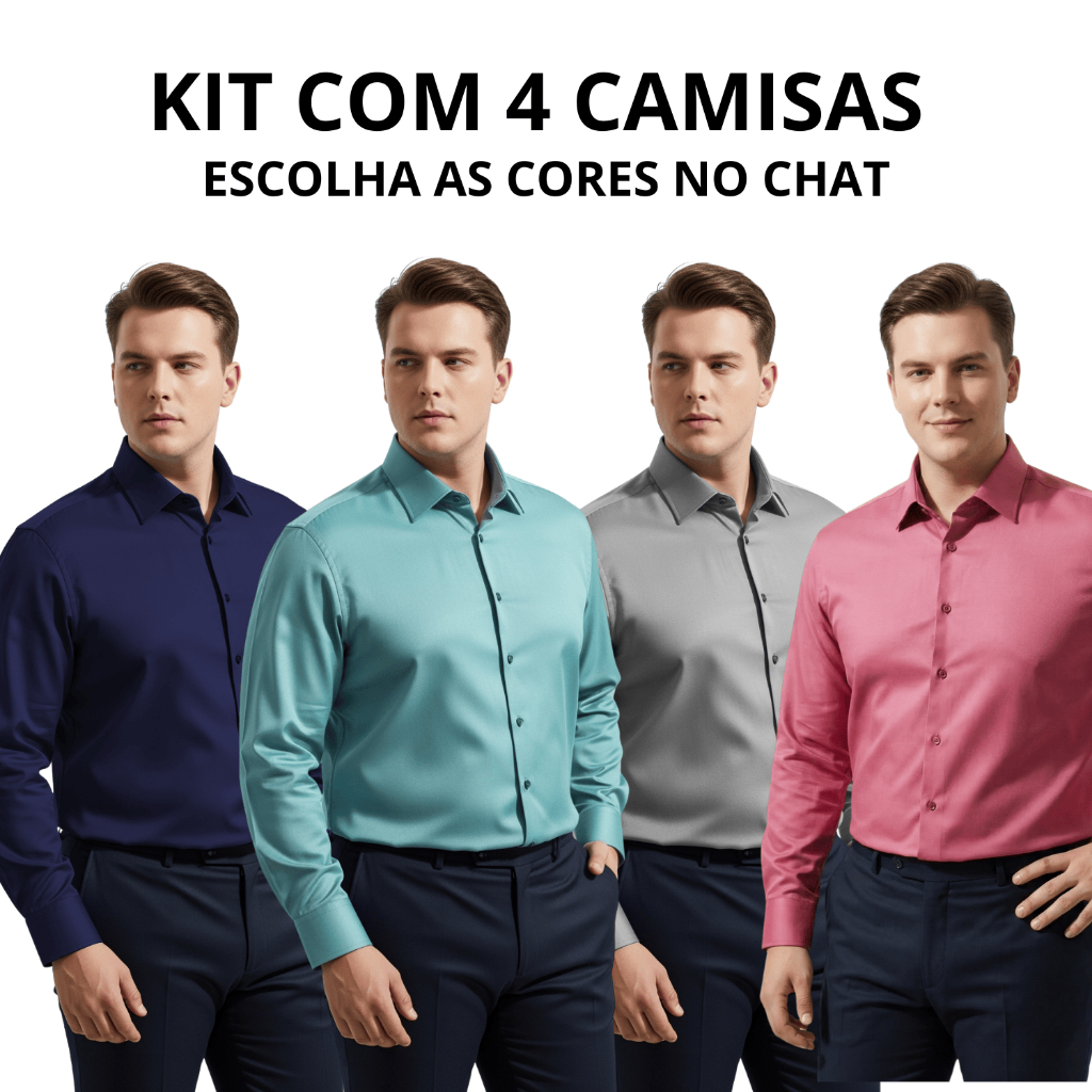 Kit 4 Camisa Social Masculino Manga Longa Camisa Lisa Social Slim Basica Plus Size