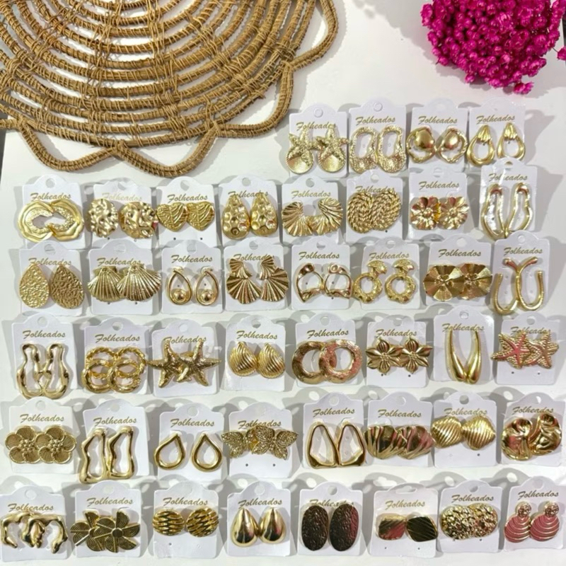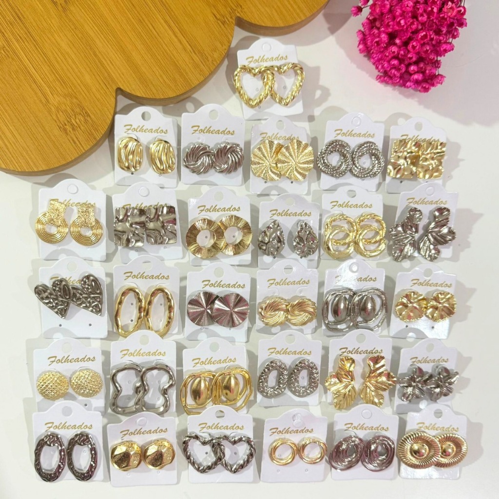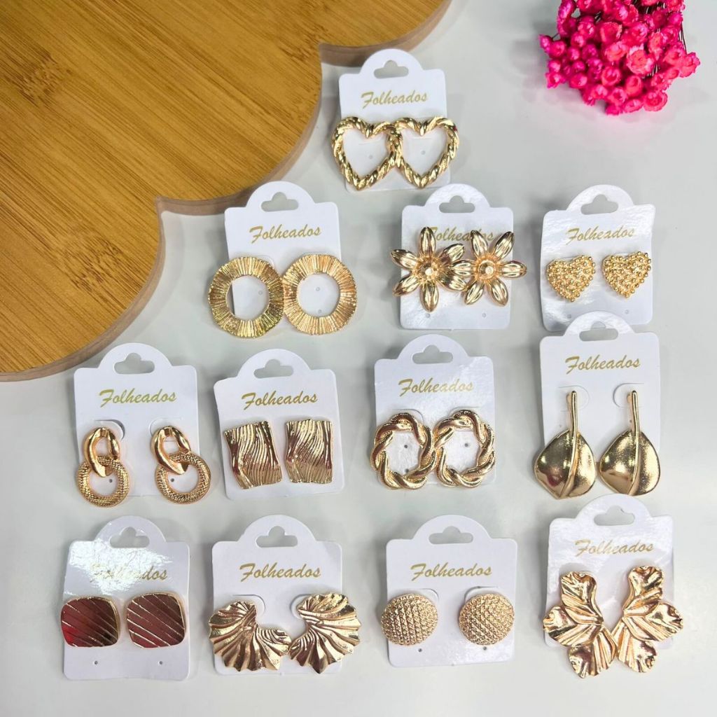 Kit 6 Pares De Brincos Femininos Folheado a Ouro e Prata Bijuteria Tendência da Moda Elegante Sortido