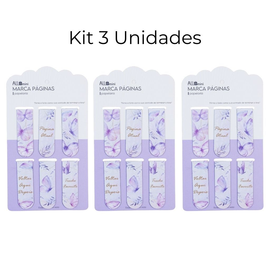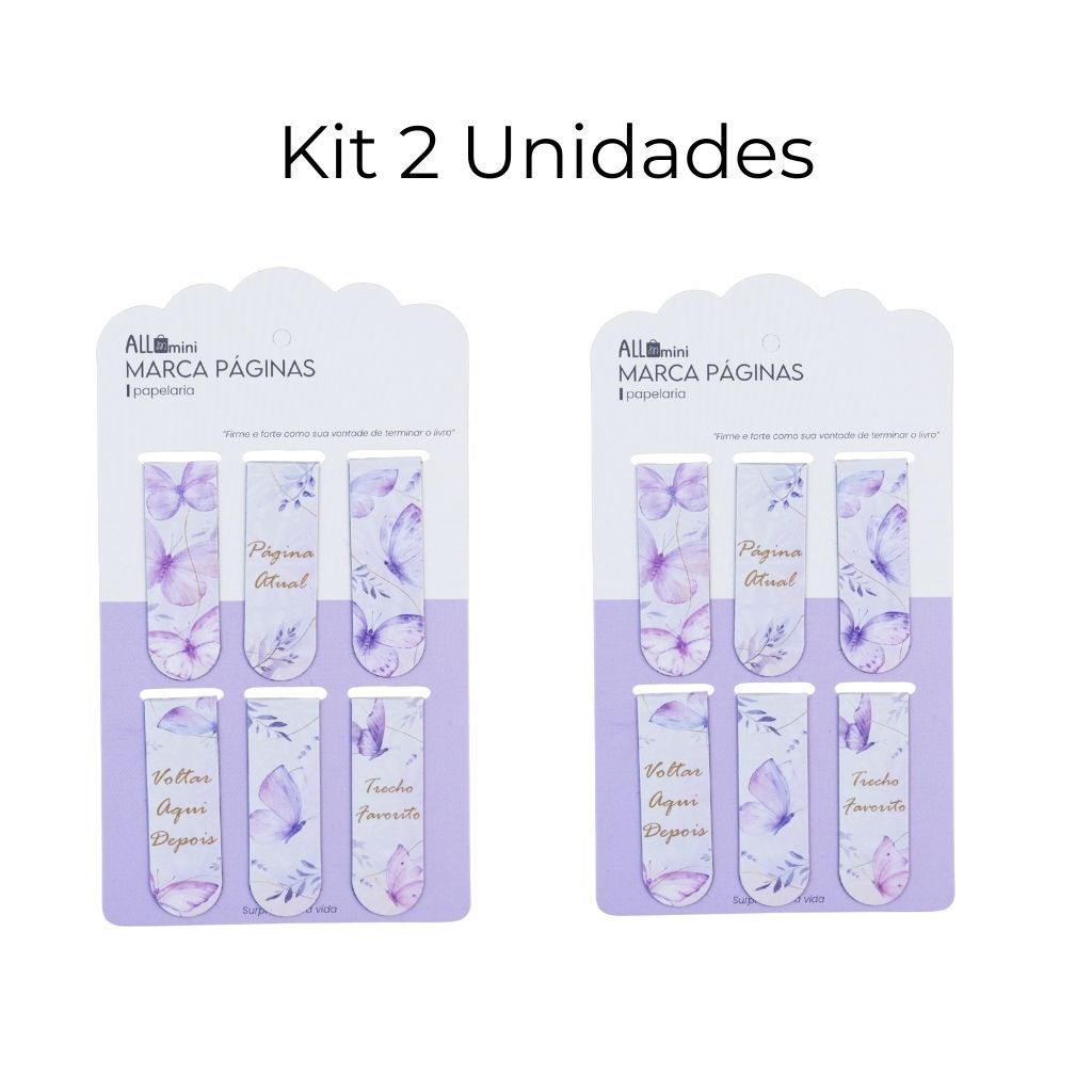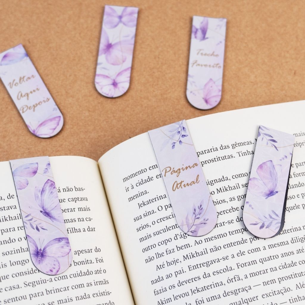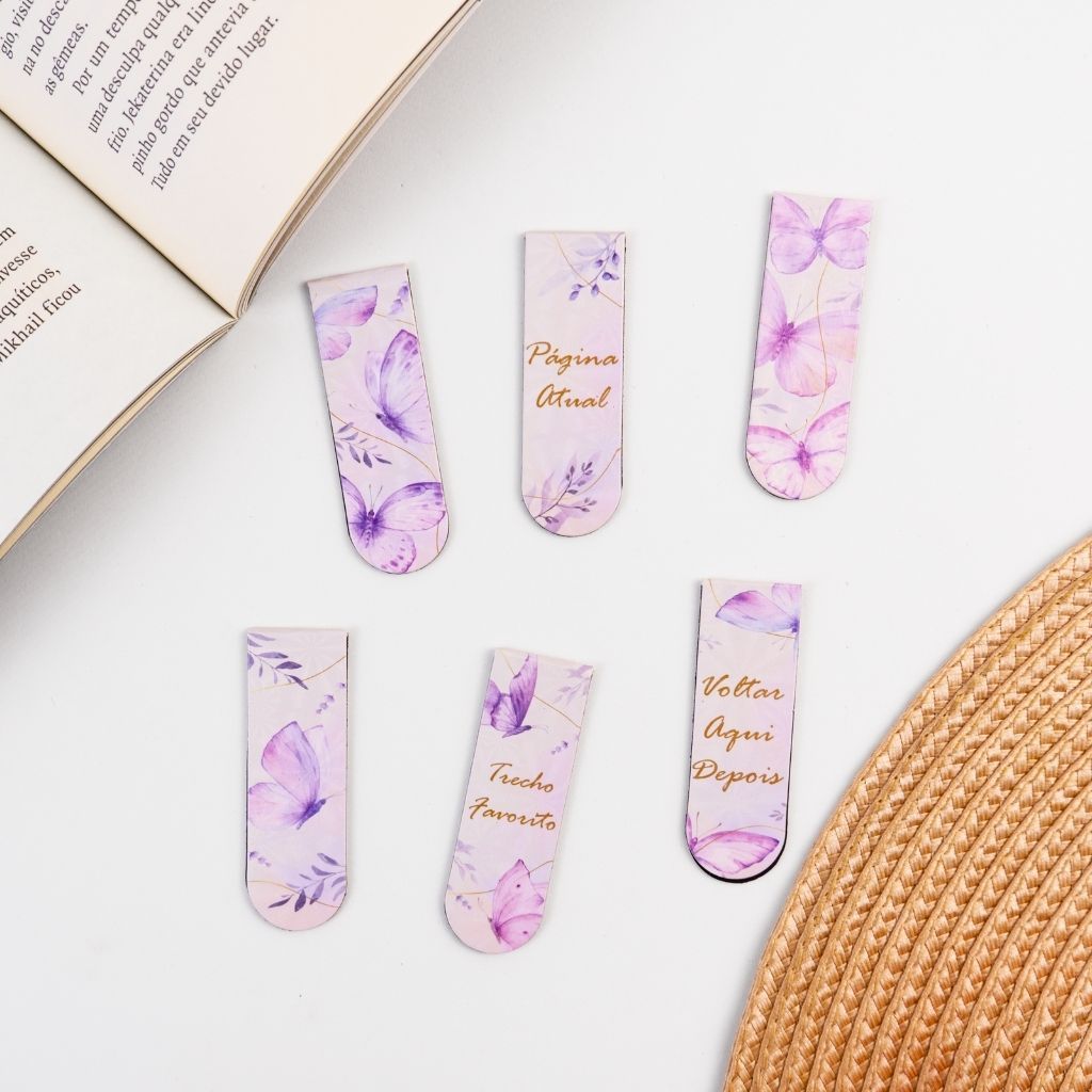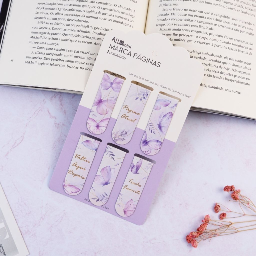 Conjunto de 6 Marcadores De Página Para Livros E Cadernos Imã Magnéticos Com Brilho, Borboletas ou Estradas - Allmini