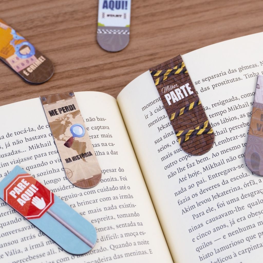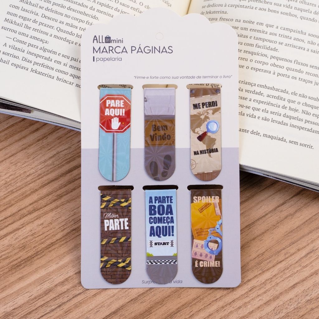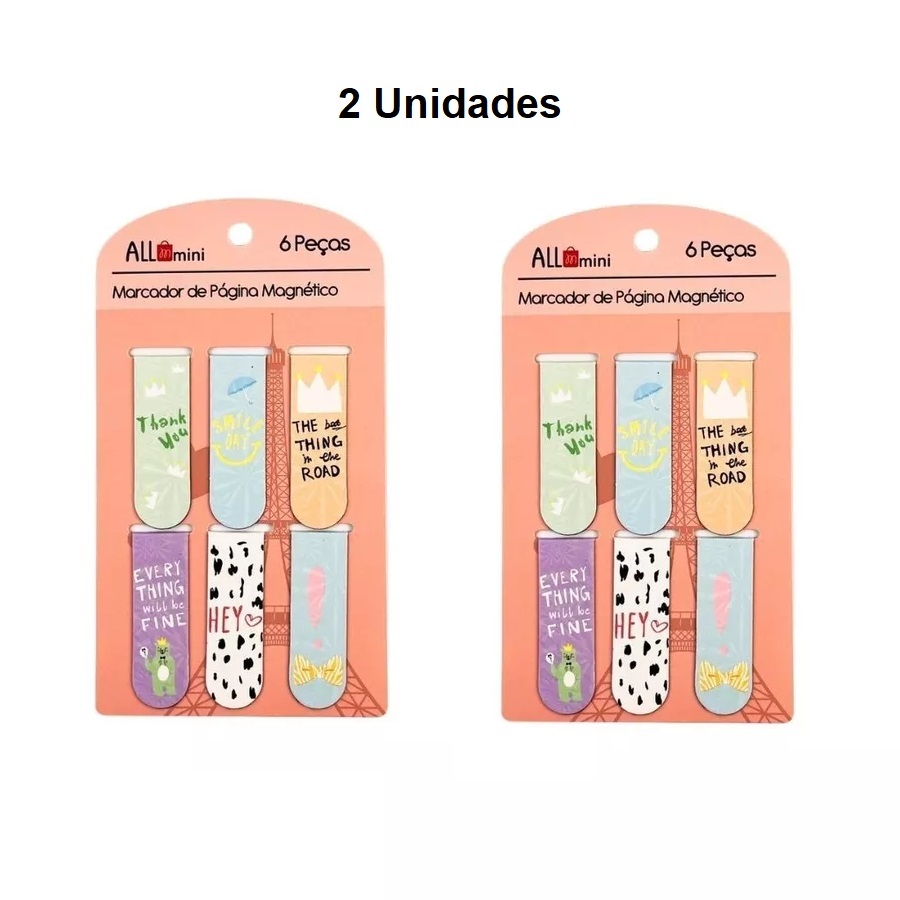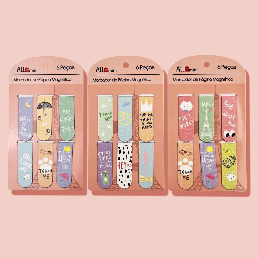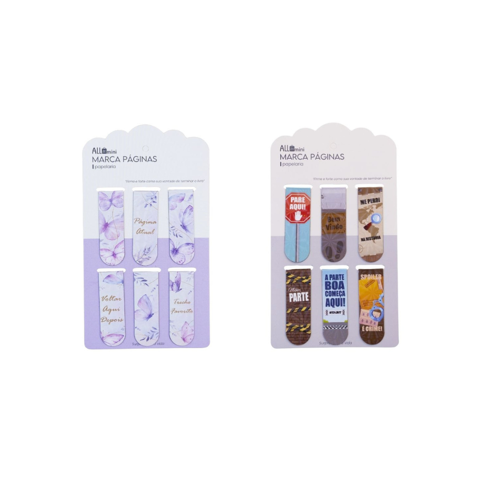 Conjunto de 6 Marcadores De Página Para Livros E Cadernos Imã Magnéticos Com Brilho, Borboletas ou Estradas - Allmini