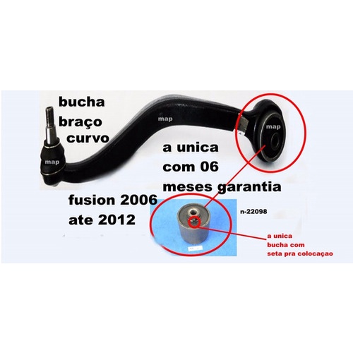 Bucha Braço Curvo Dianteiro Ford Fusion 2006 A 2012 Cada Reforçada Alta Durabilidade Borracha Top