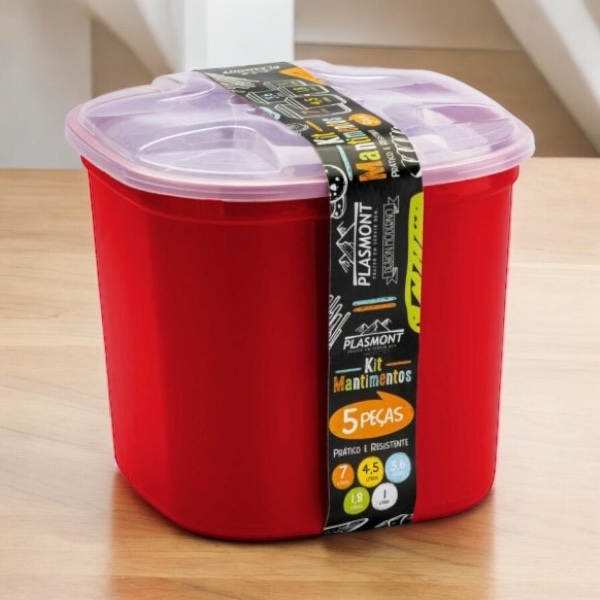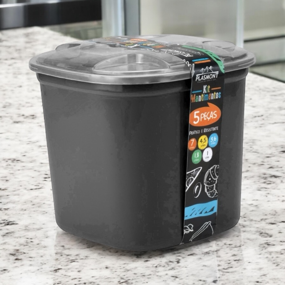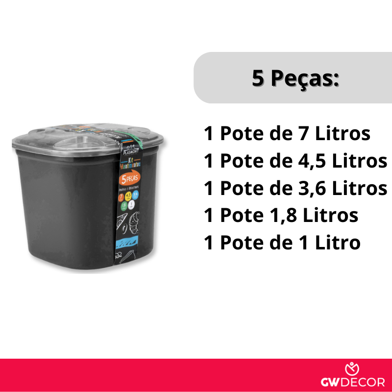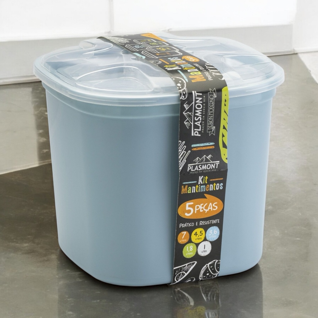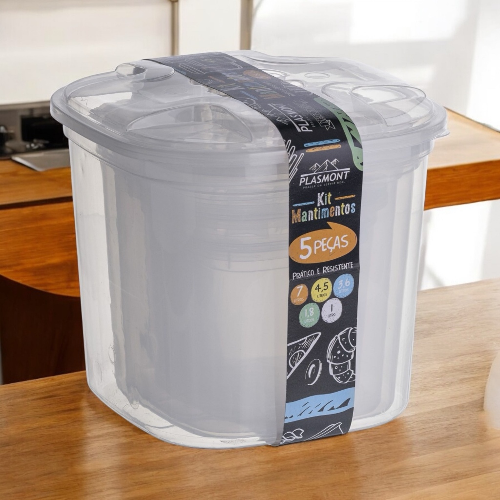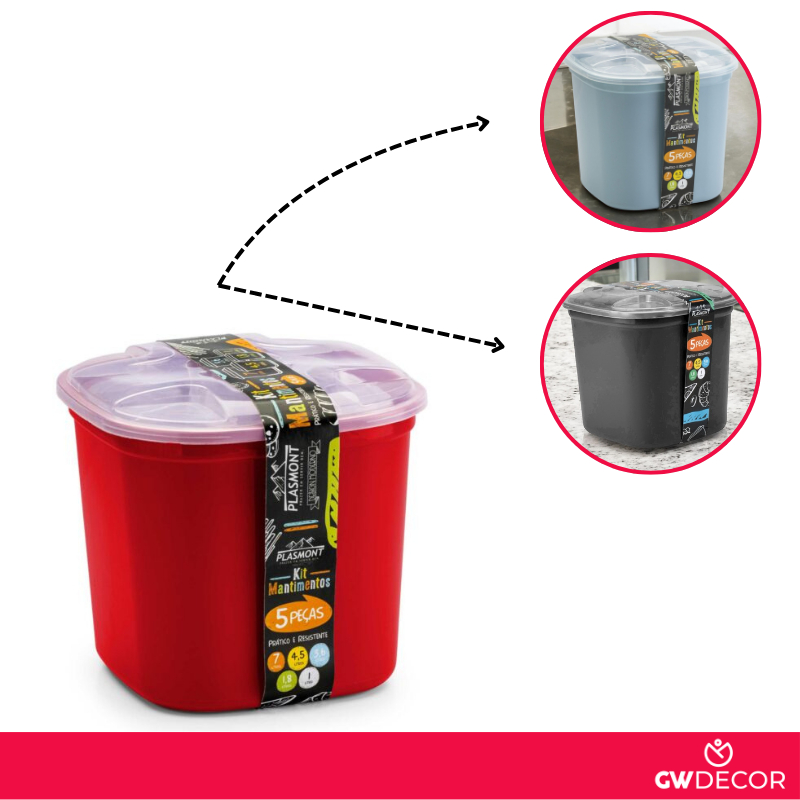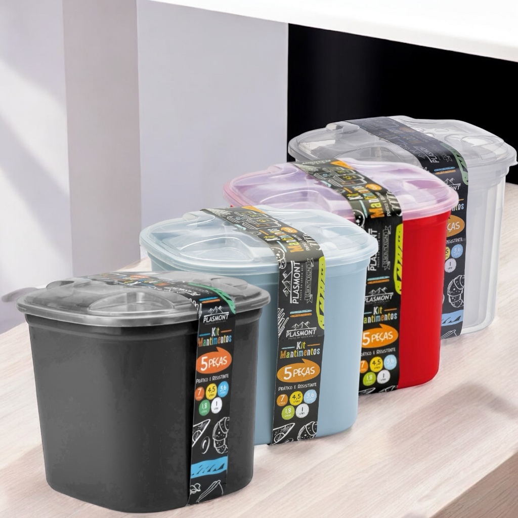 Kit Porta Mantimentos 5 Peças Transparente e Colorido Organizador Alimentos