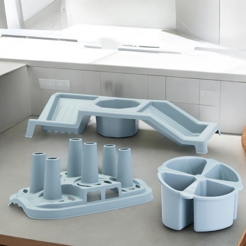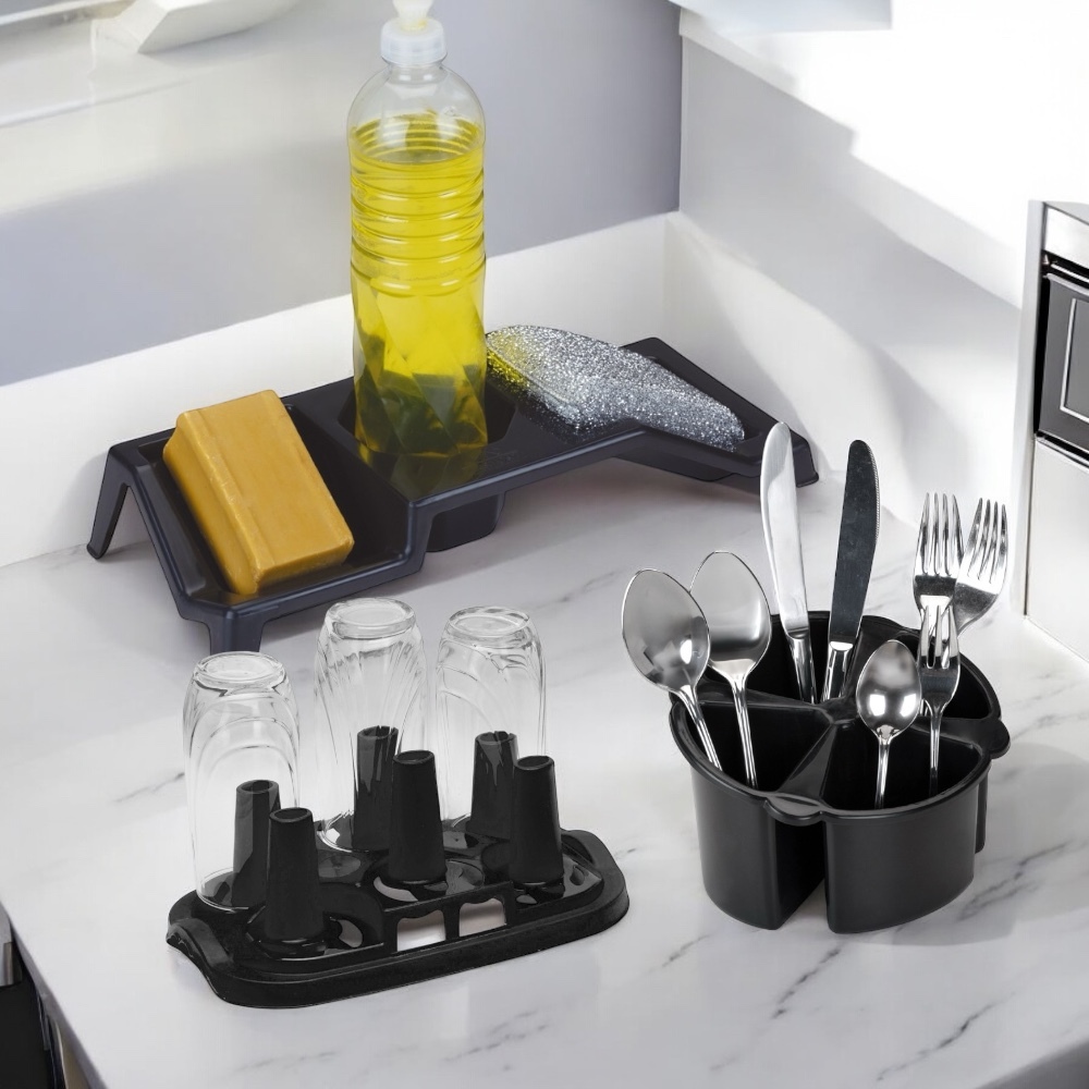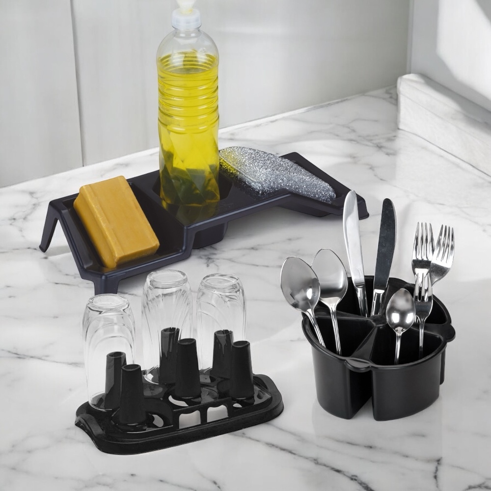 Kit Porta Detergente Sabao e Esponja + Escorredor de Copos e Talheres