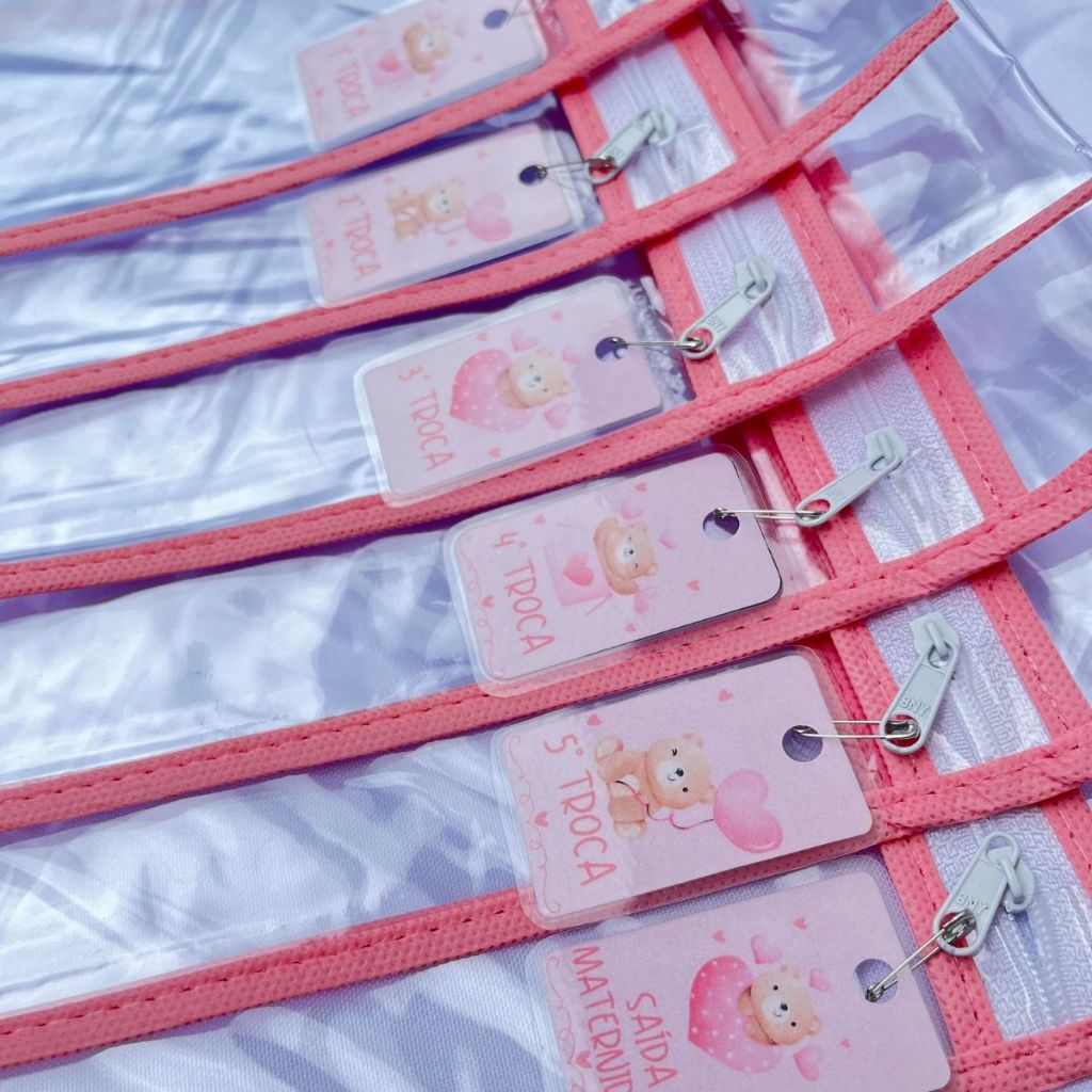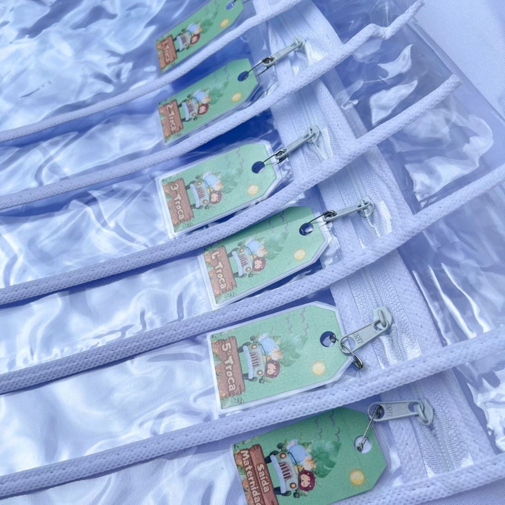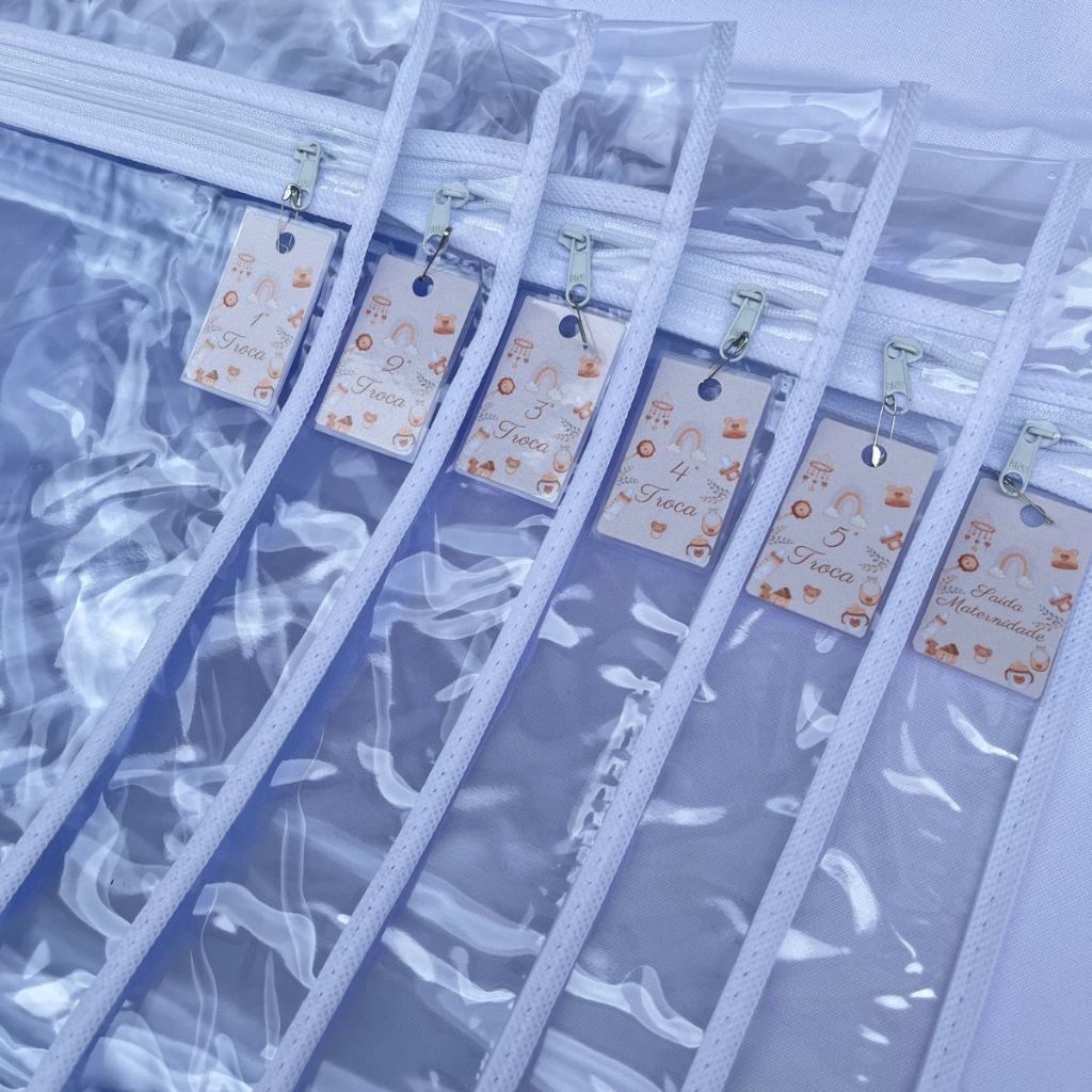Kit 06 saquinhos organizador de mala e saída maternidade + Tag de identificação de troca