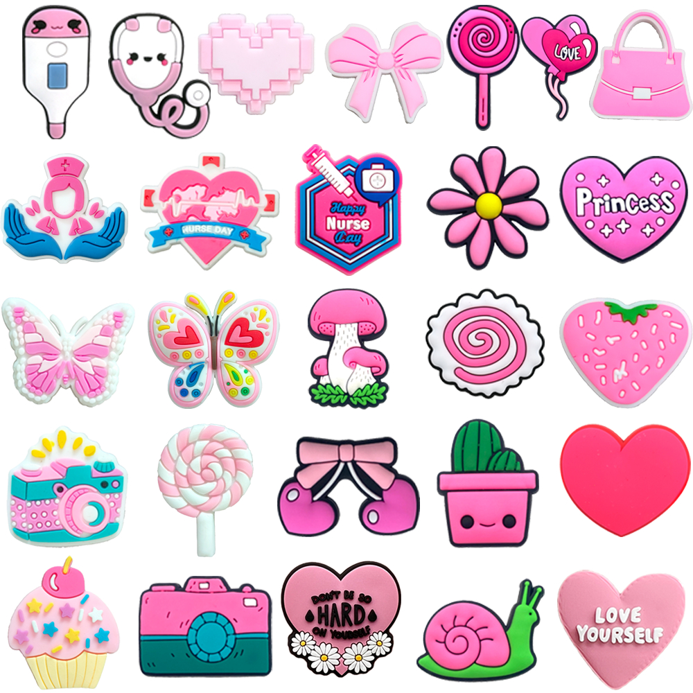 MEIDJ 1 Peça Amuletos De Sapato Decrations Série Rosa De Desenho Animado Sandálias Fivela Botão De Acessórios De PVC