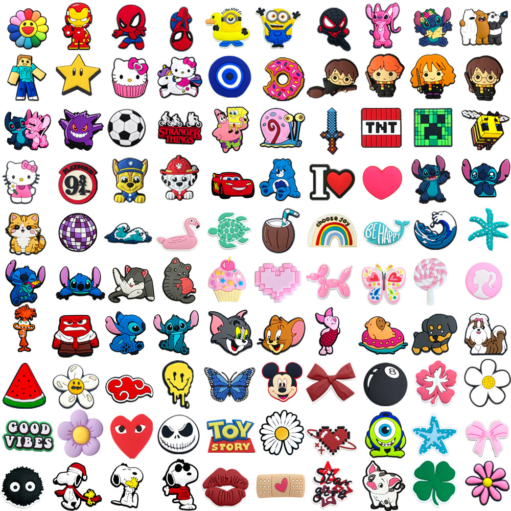Hot 100 Estilo Sapato Encantos Decrations Desenhos Animados Anime Personagens Sandálias Fivela PVC Acessórios Botão