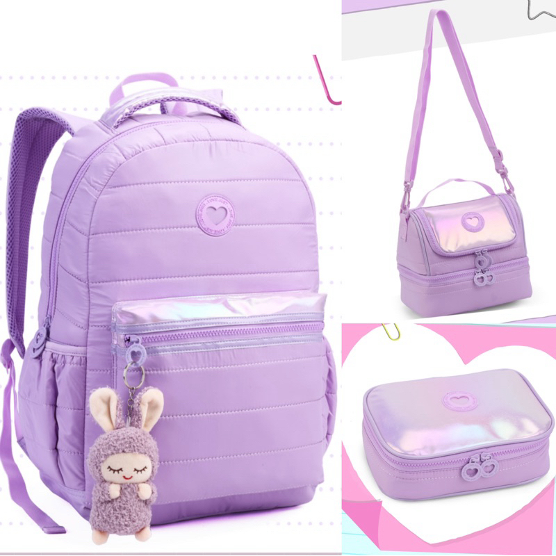 MOCHILA JUVENIL FEMININA LISO COM LANCHEIRA E ESTOJO ESCOLAR DENLEX