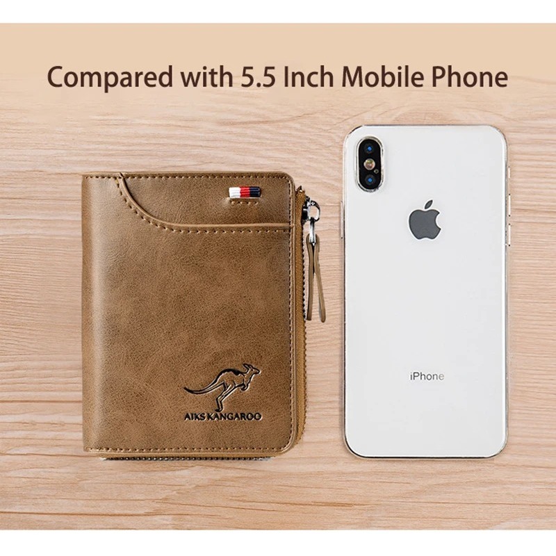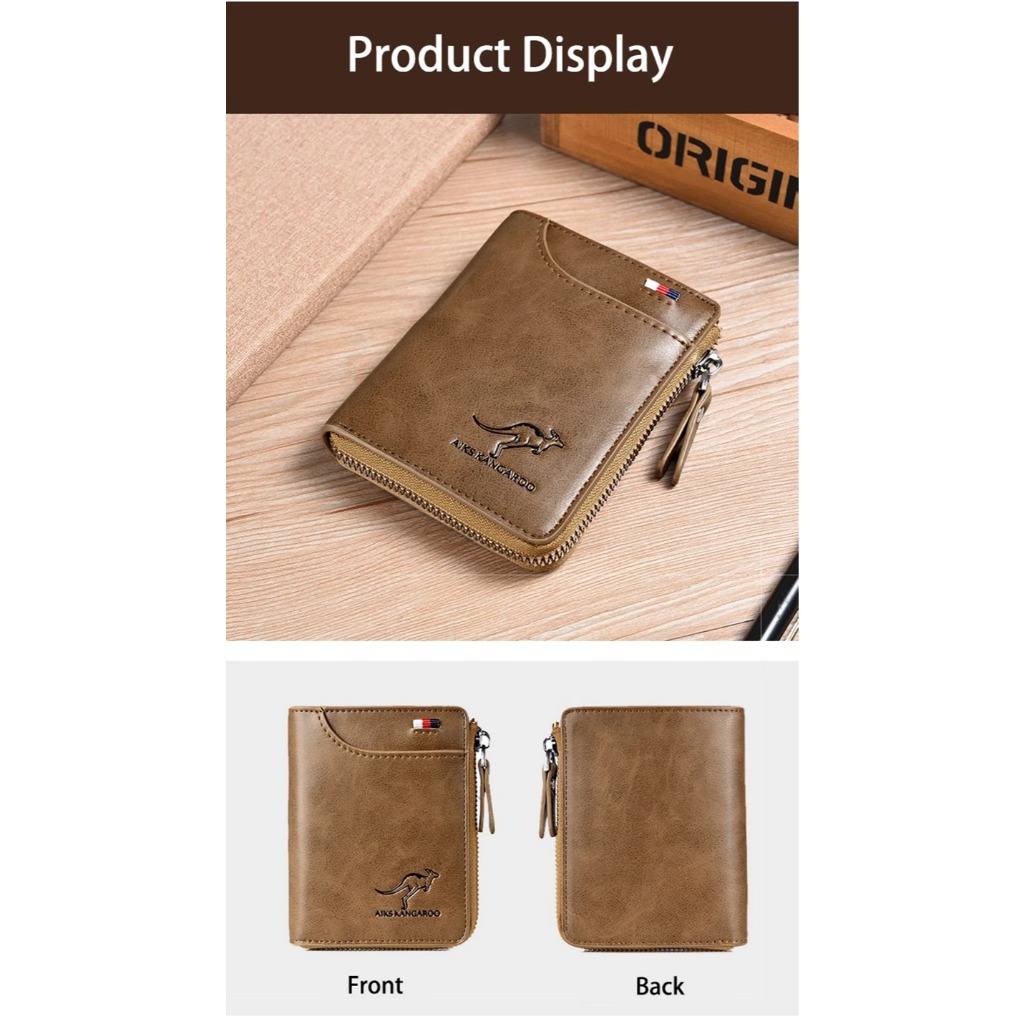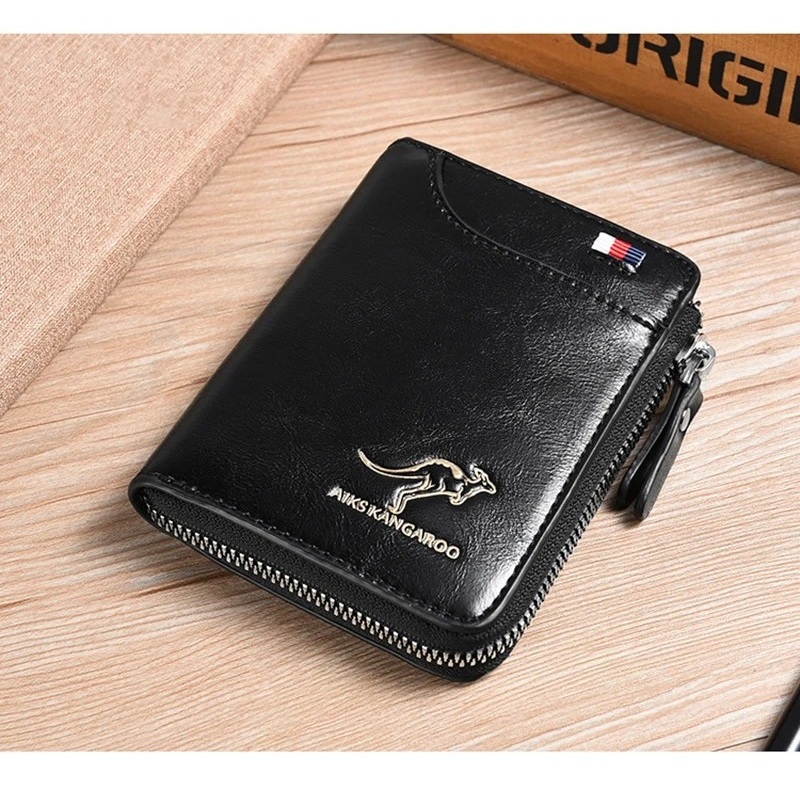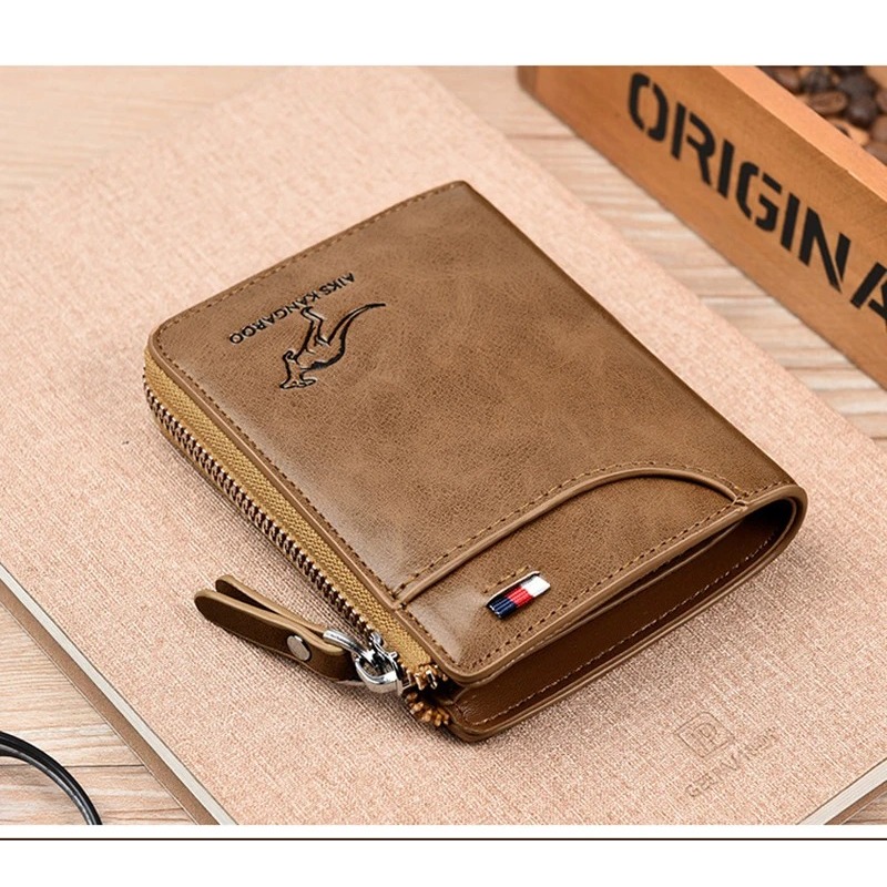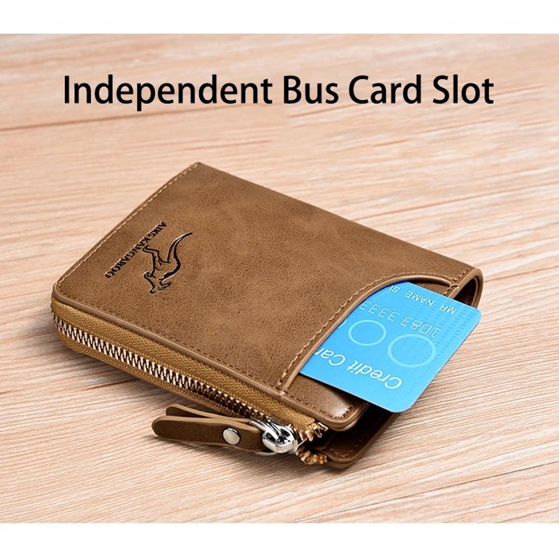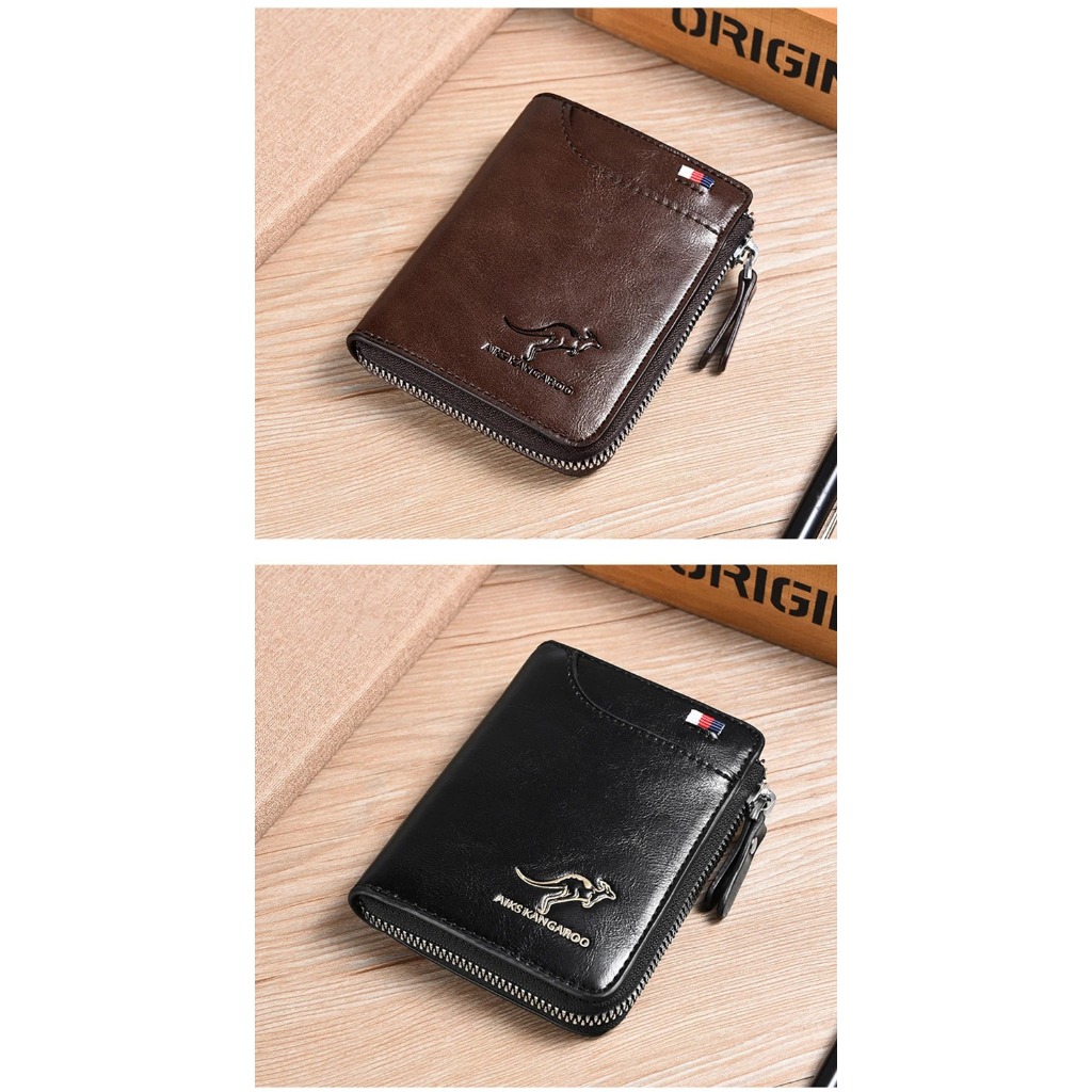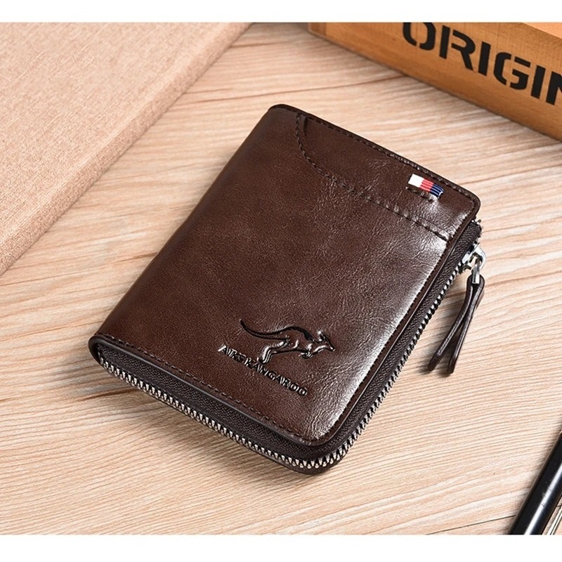 Carteira Masculina de Couro Com Zíper Luxo Proteção RFID Suporte De Cartão