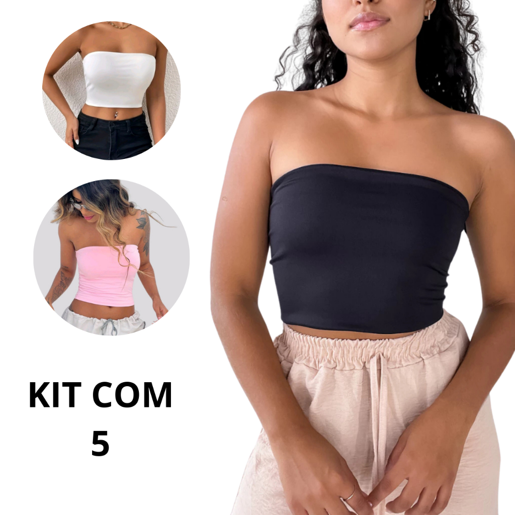 Kit 5 Tomara que caia Tubinho Básico Tube Cropped