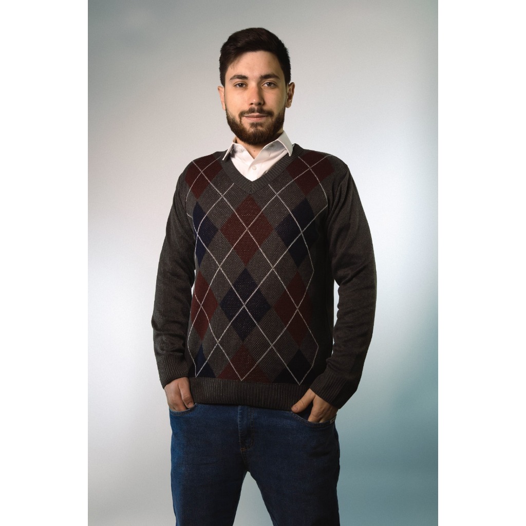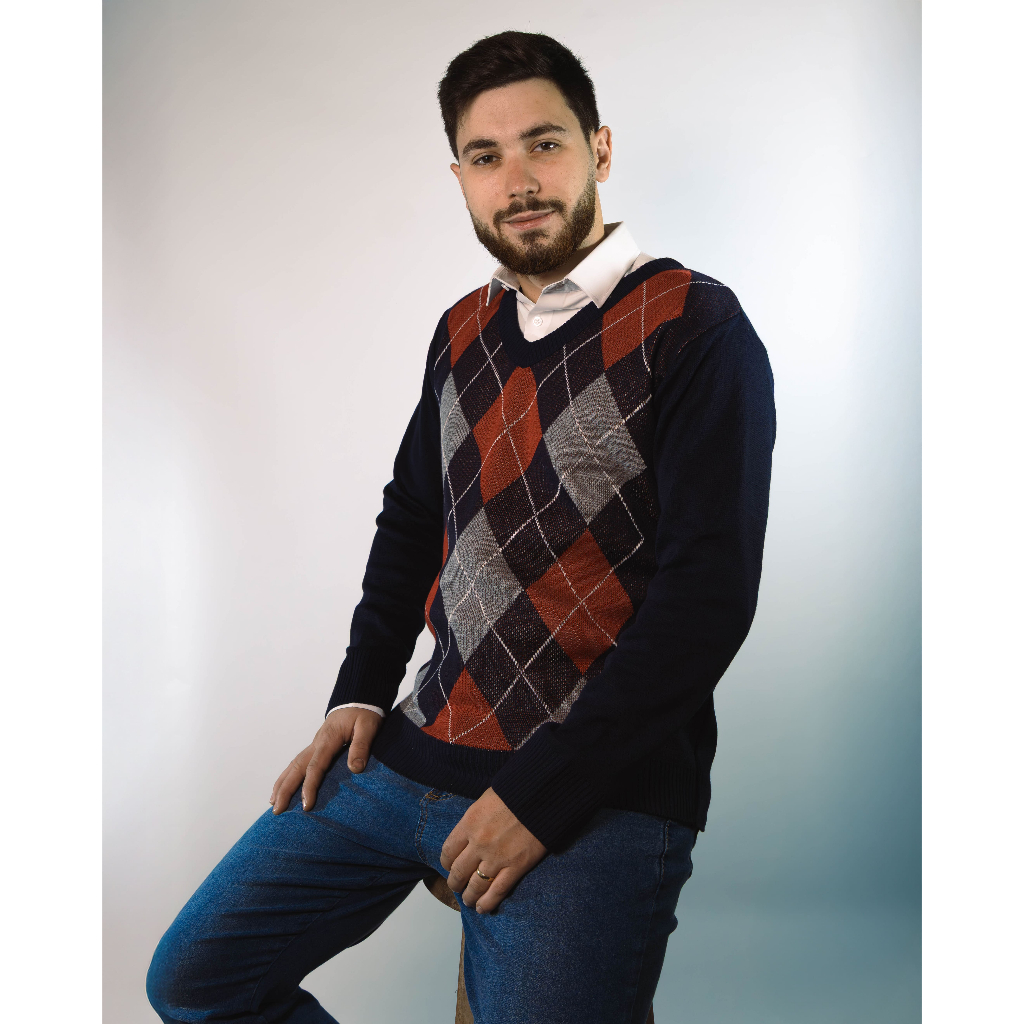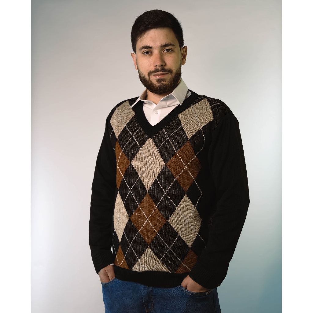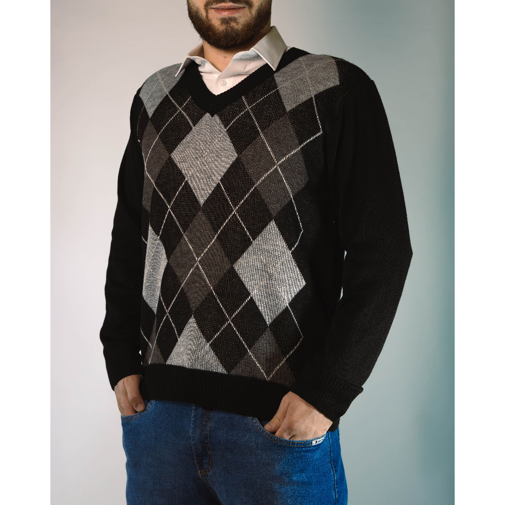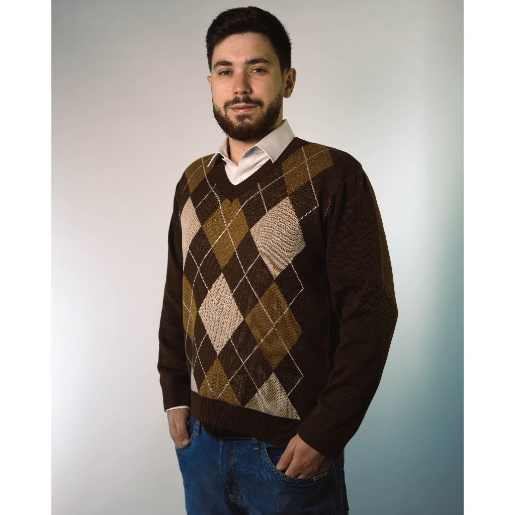 Sueter Masculino Tricot Inverno Blusa Malha Alta Qualidade Lã Manga Longa Losango