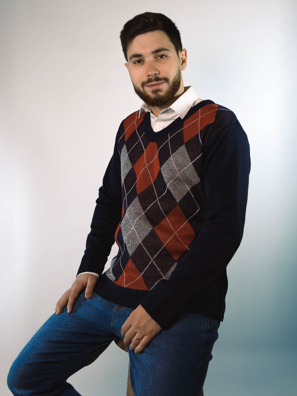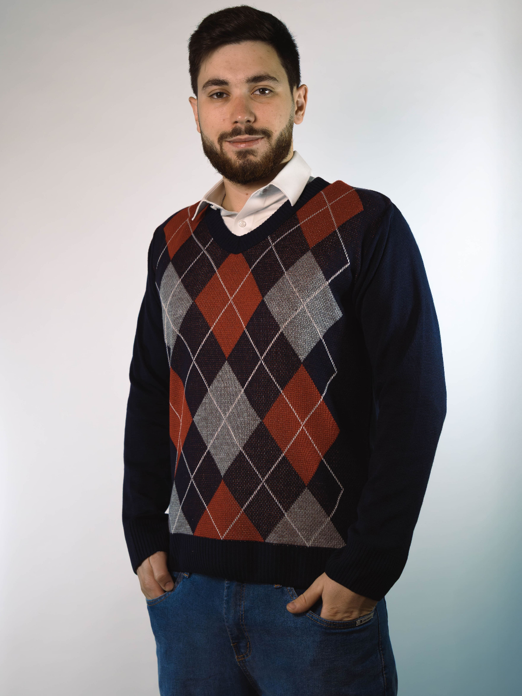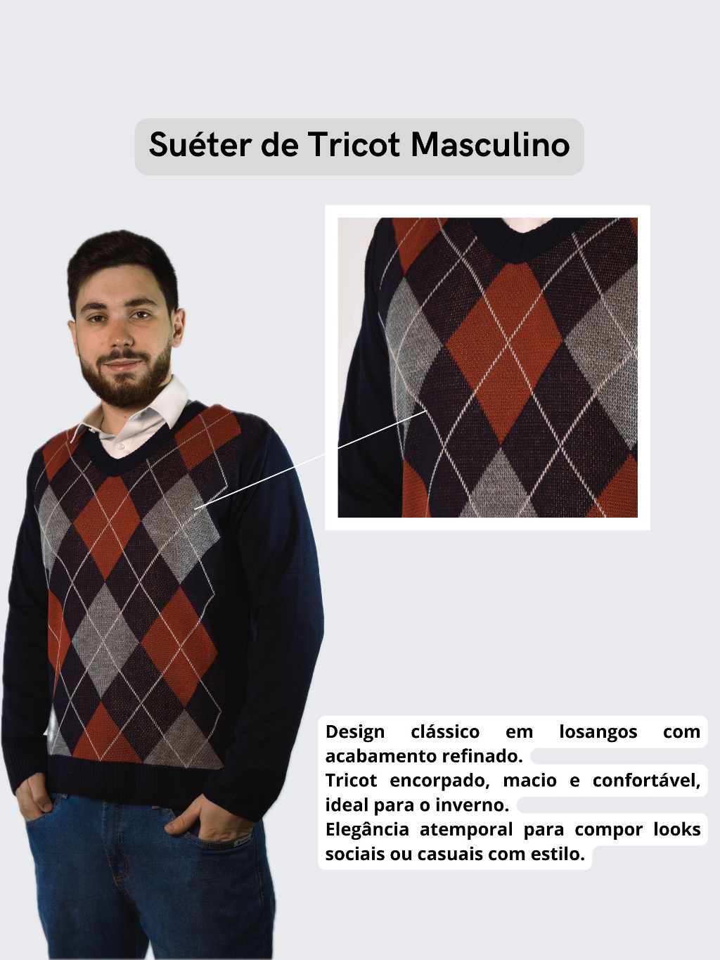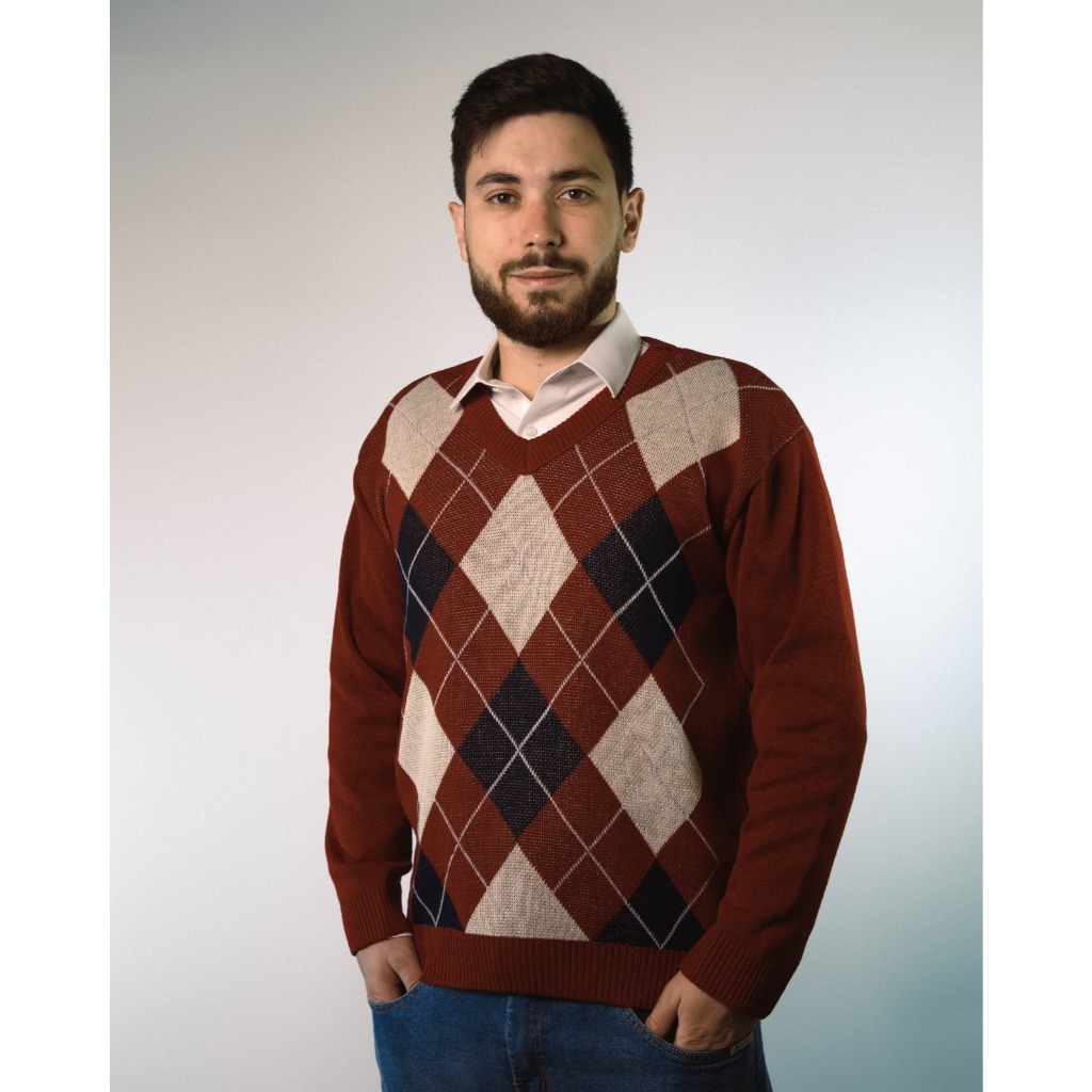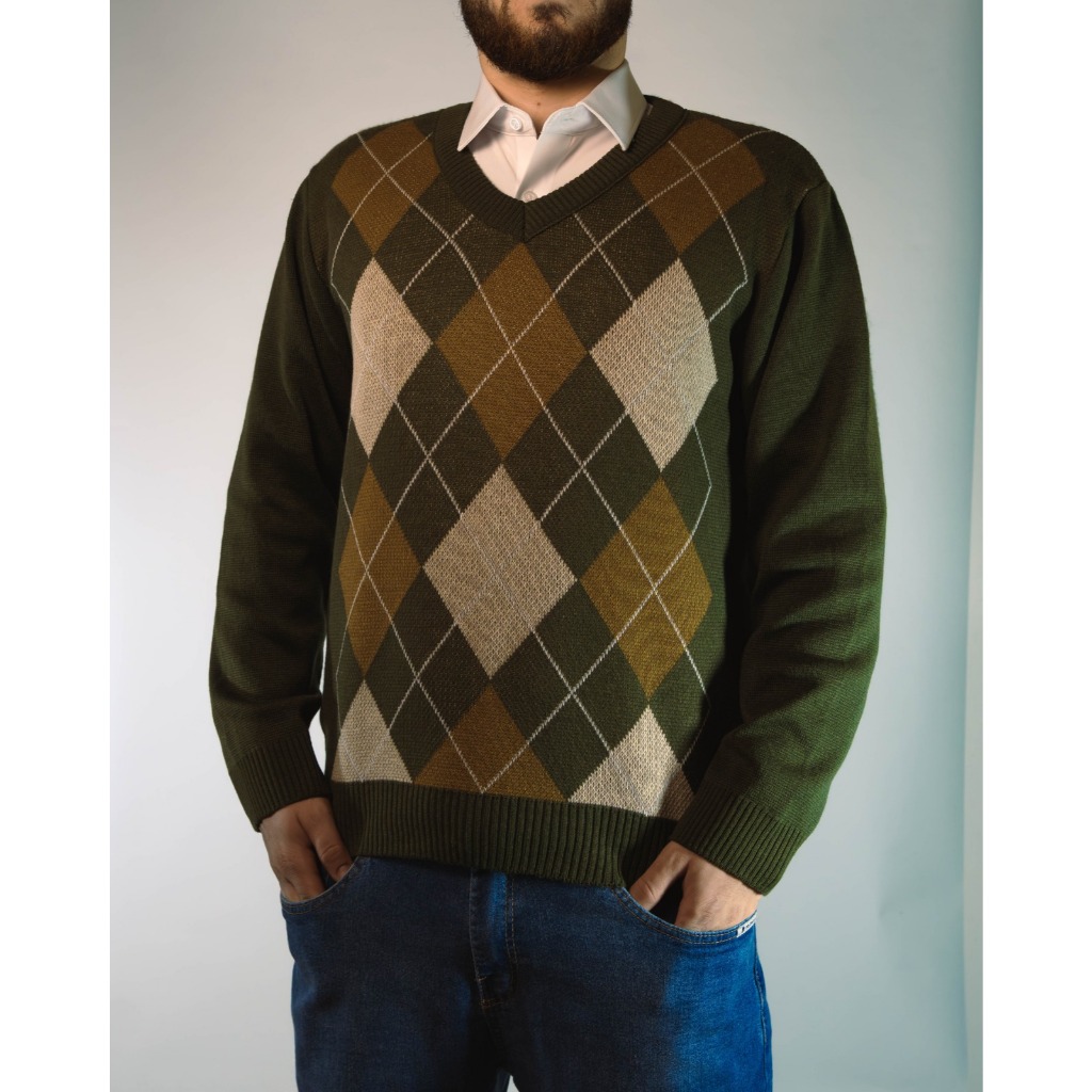 Sueter Masculino Tricot Inverno Blusa Malha Alta Qualidade Lã Manga Longa Losango