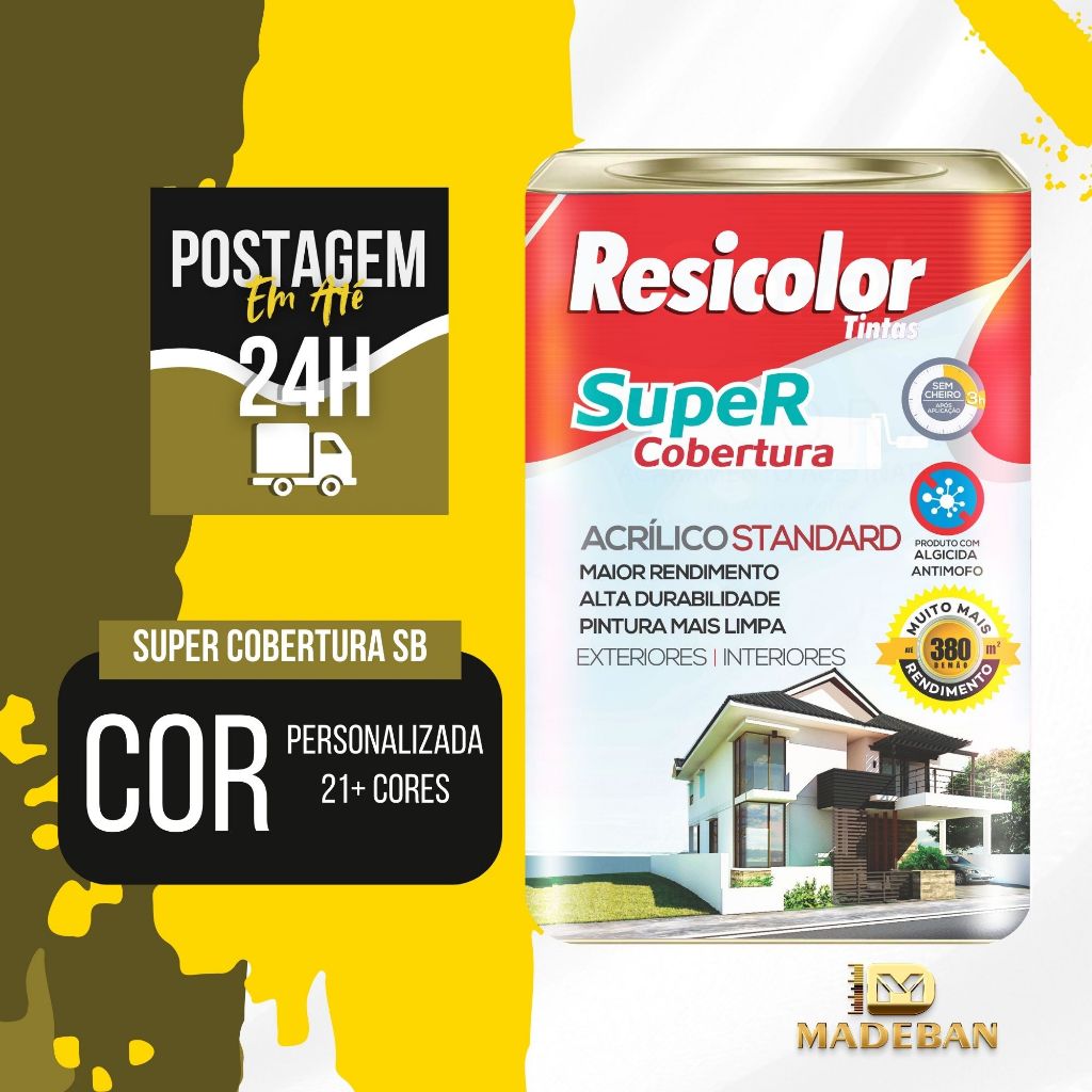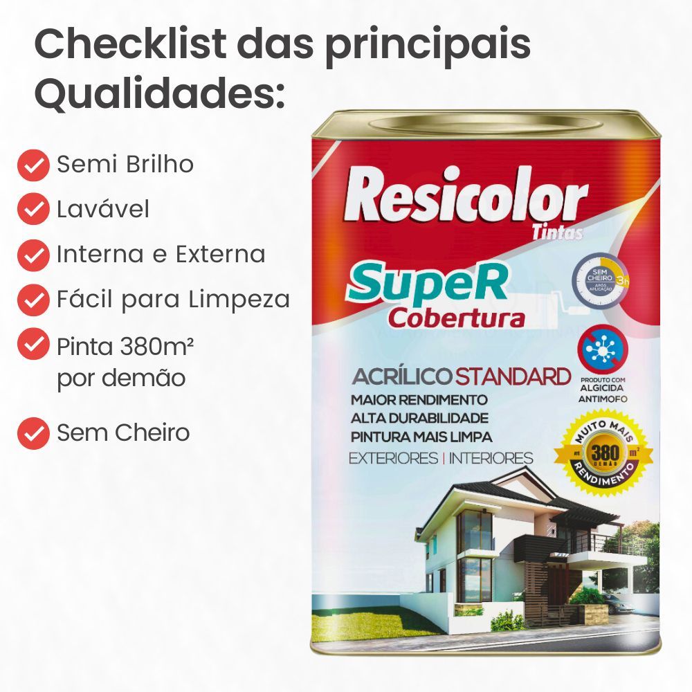 Tinta Super Cobertura Anti Mofo 16,2L. Semi Brilho ou Fosca Resicolor. Escolher Acabamento.