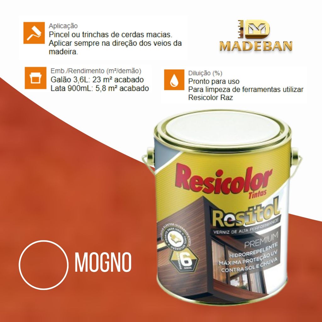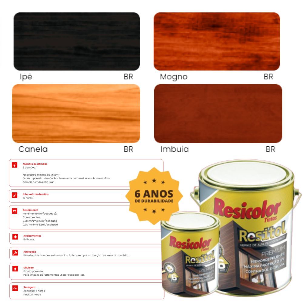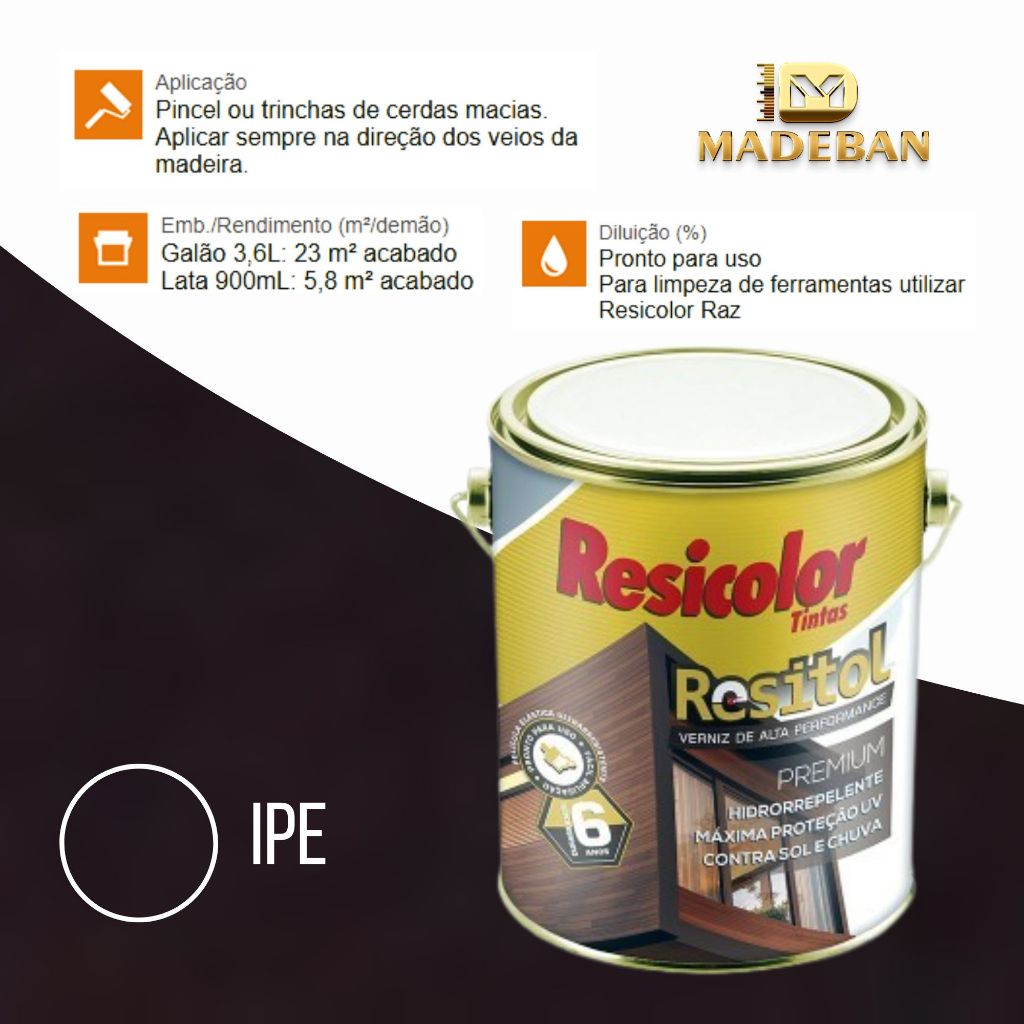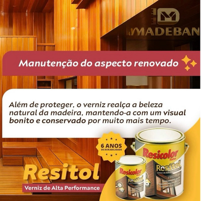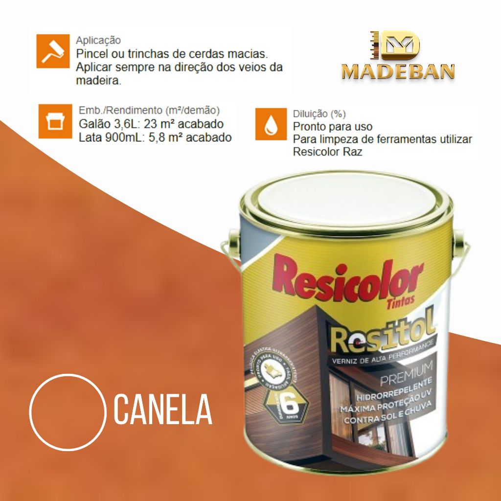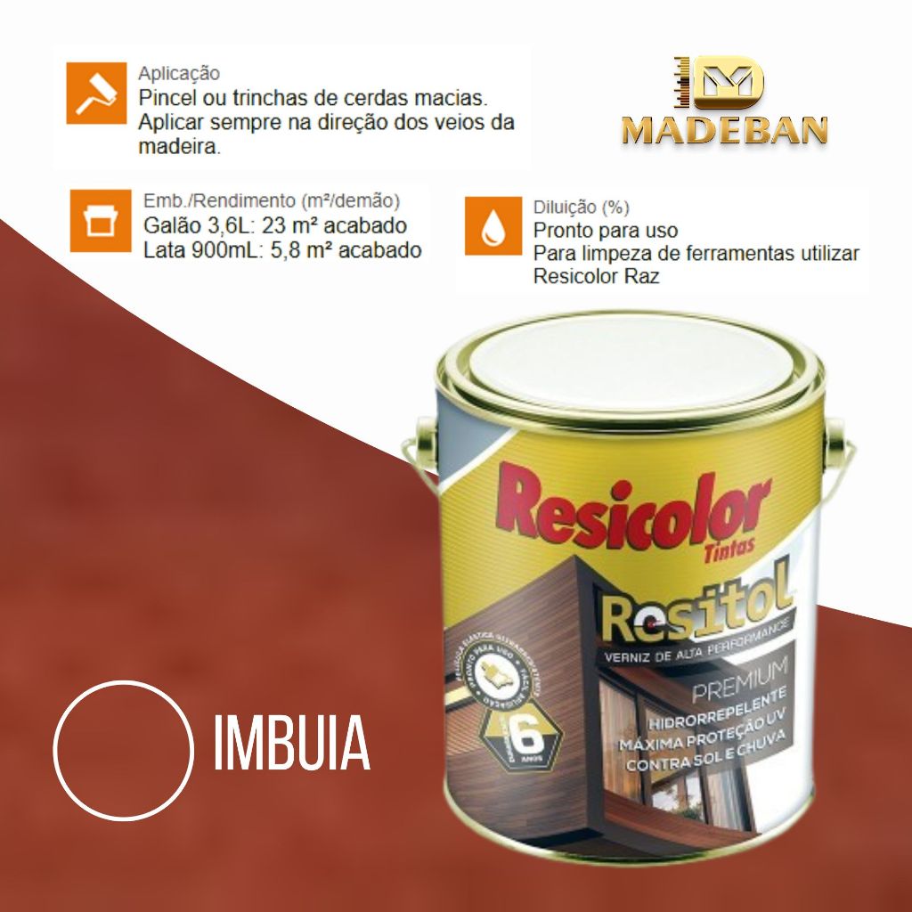 Resitol Verniz Emborrachado 3,6L. Alta Durabilidade Com Grossa Película Resicolor