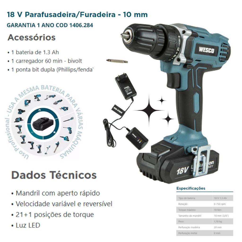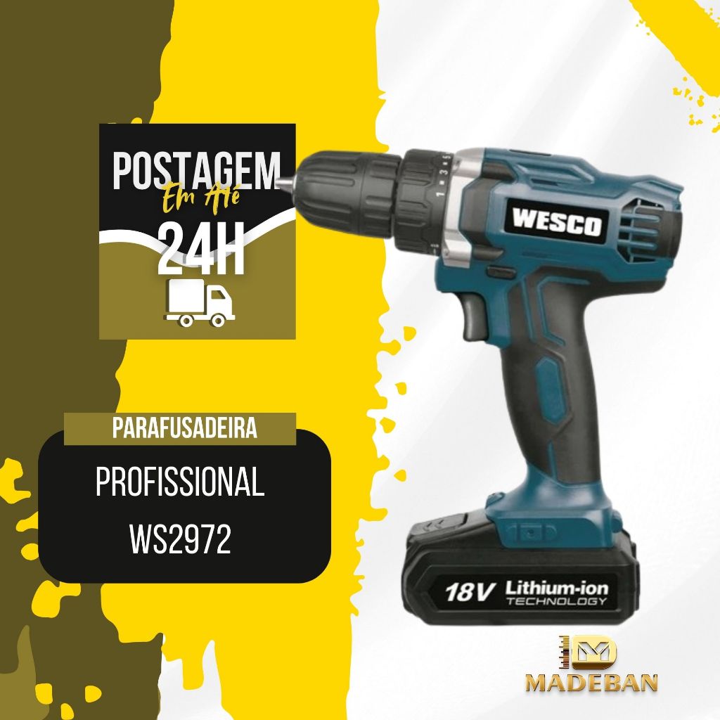 Parafusadeira A Bateria 18V Profissional C/ 1 Bateria WS 2972 Wesco