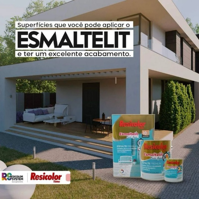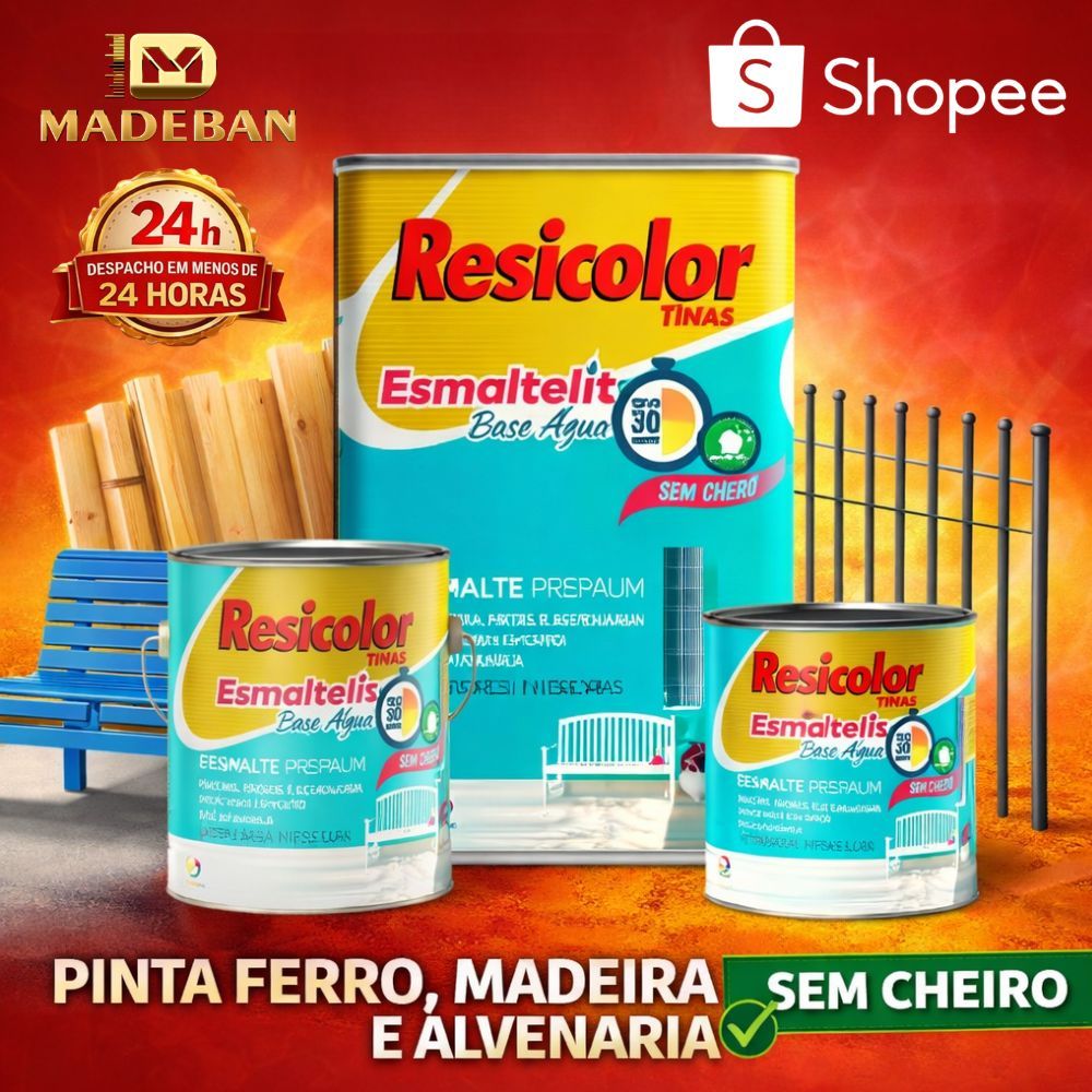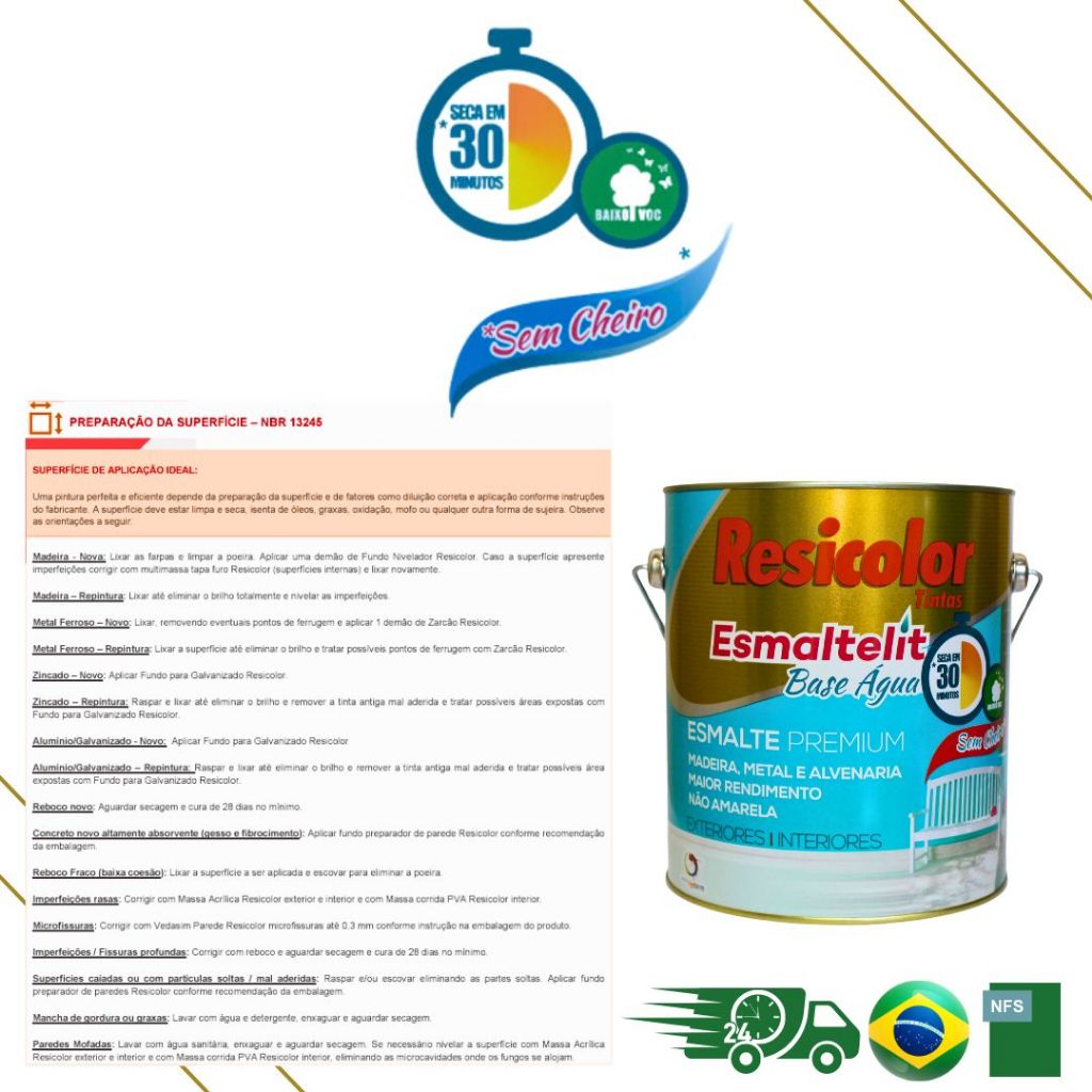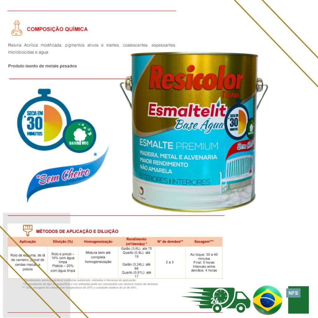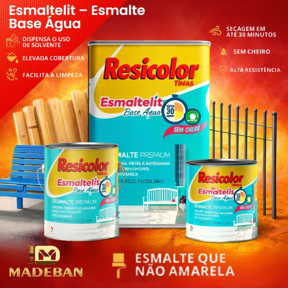Esmalte Base Água Resicolor Esmaltelit – Tinta p/ Metal Madeira e Parede | Não Amarela | Sem Cheiro
