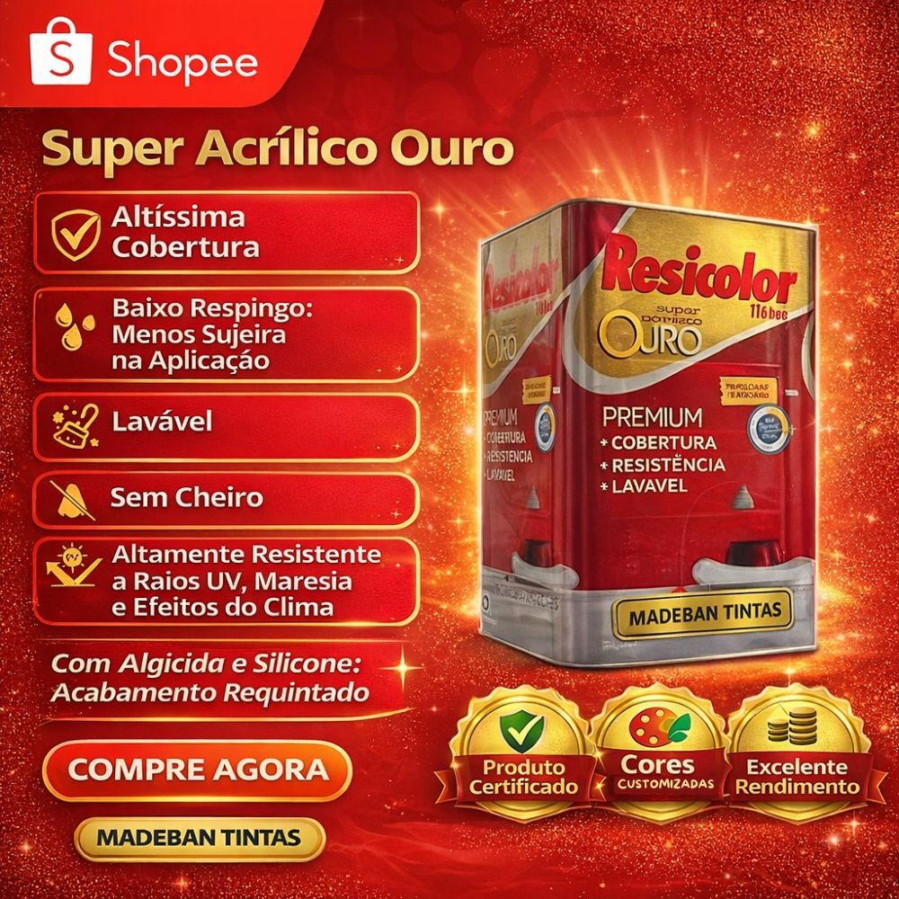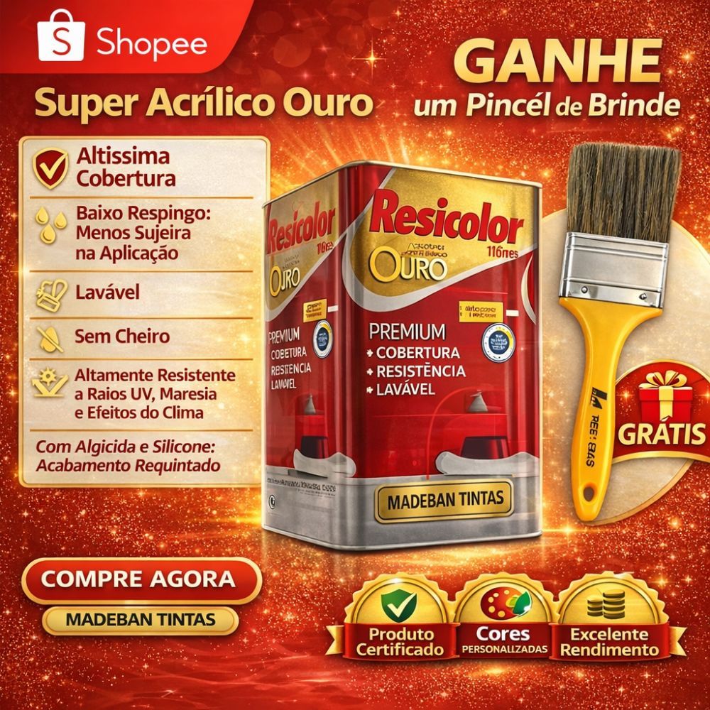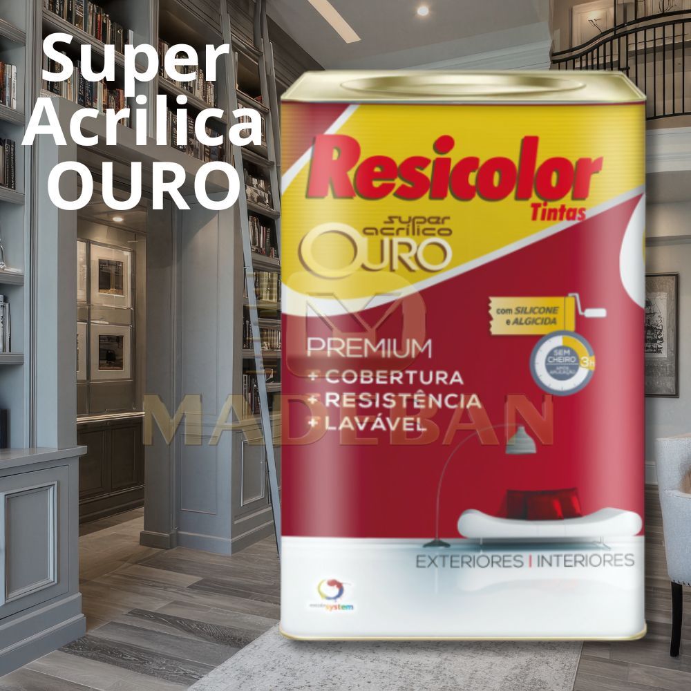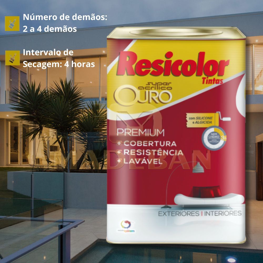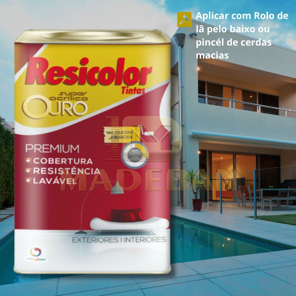 Tinta Acrílica Resicolor Ouro Premium Alta Cobertura Resistente Sol e Chuva Lavável + Pincel Grátis