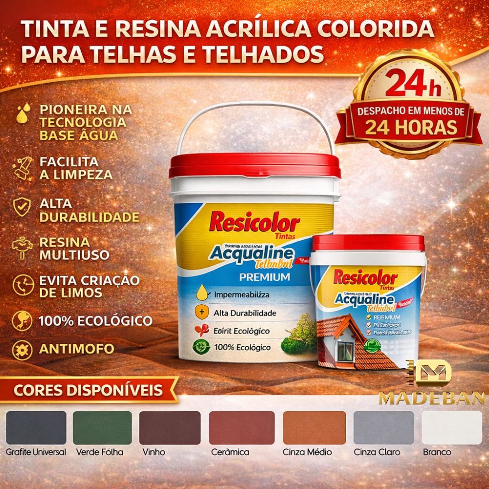 Tinta para Telhas Resina Telhabril Acqualine 18L Veda Telha.