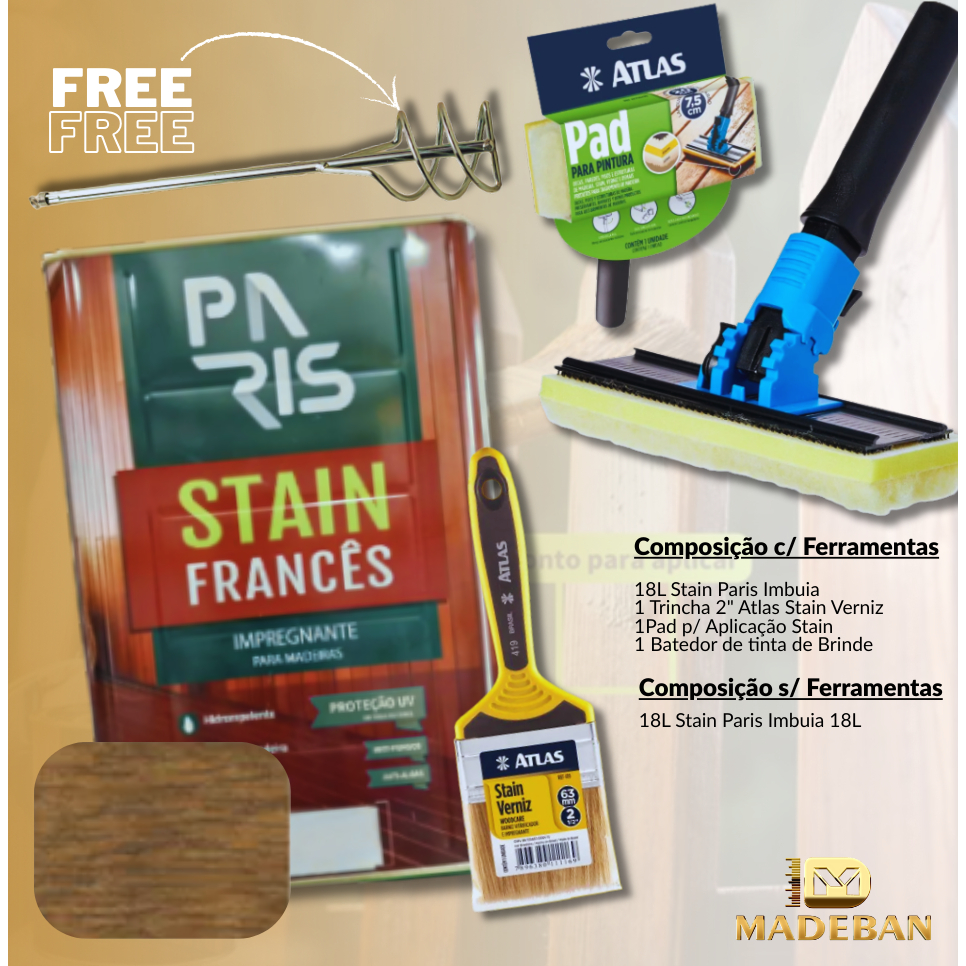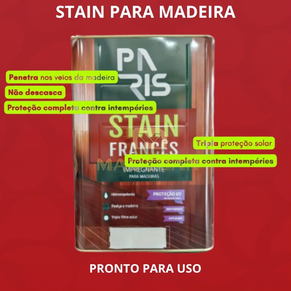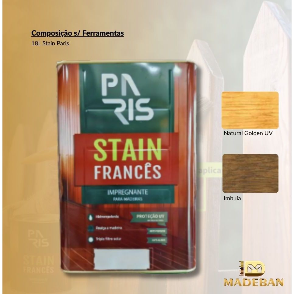 Stain Francês Impregnante UV 18L Linha Paris | Proteção para Madeira Externa e Interna