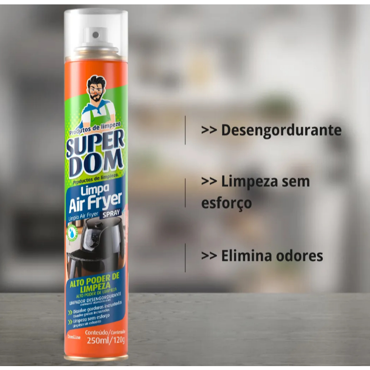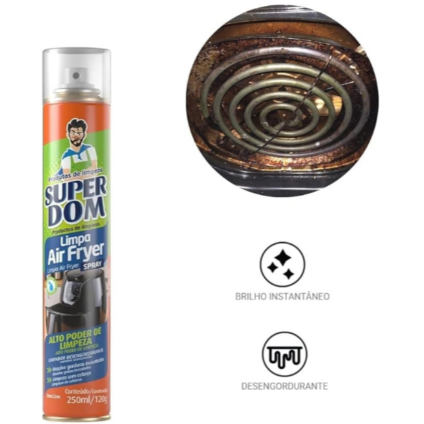 Limpa Air Fryer Brilho Desengordurante Super Dom 250ml Desincrustante Spray