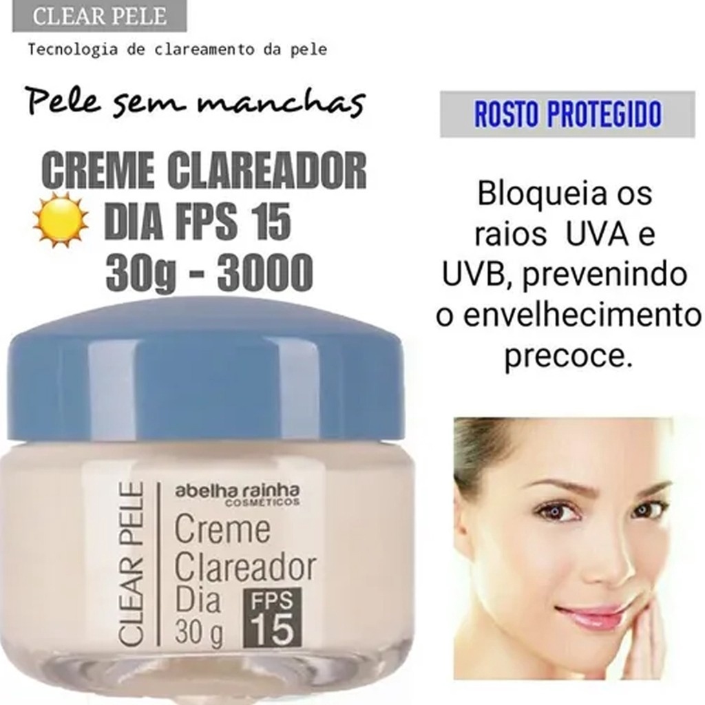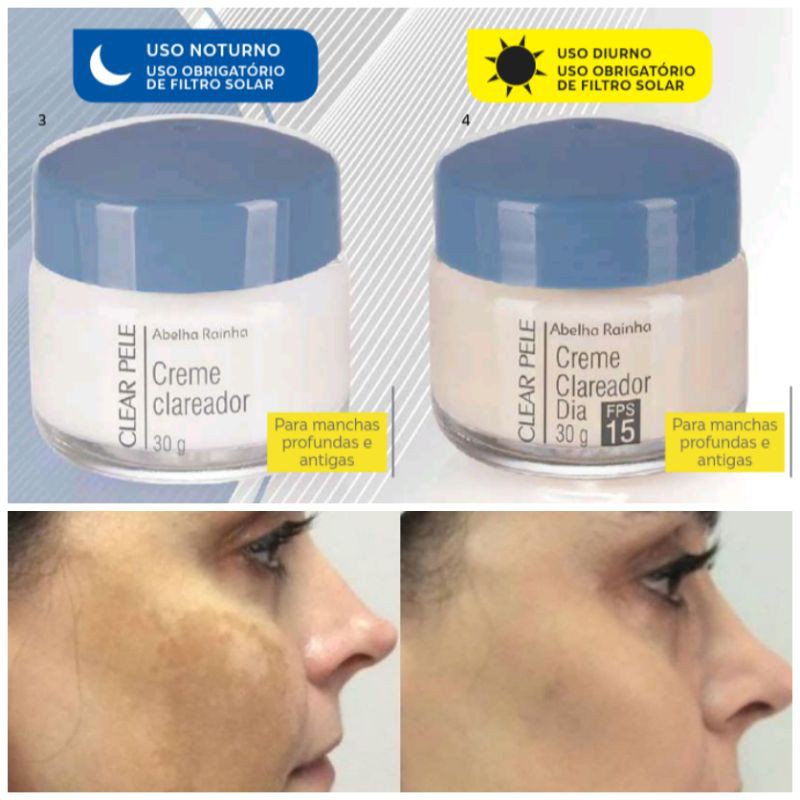 Kit 2 Clear Pele - Creme Clareador de Manchas Faciais Dia + Noite Abelha Rainha (Melasma, Sardas)