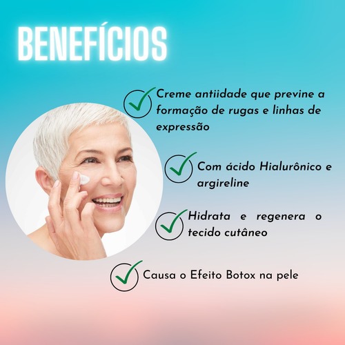 Antirugas Efeito Botox Creme Rosto Ácido Hialurônico e Peptídeos -30g