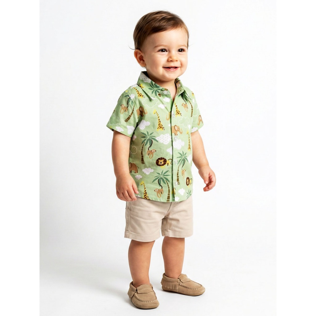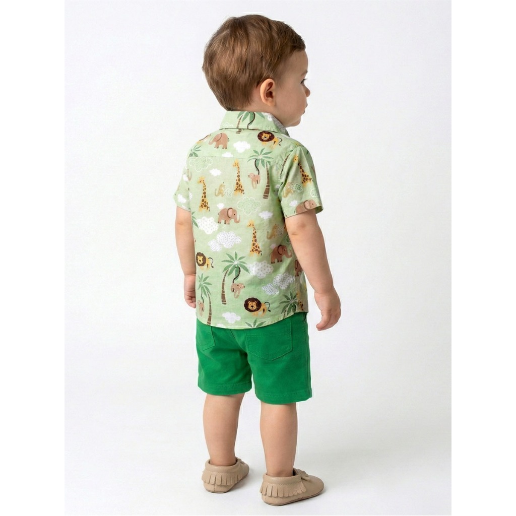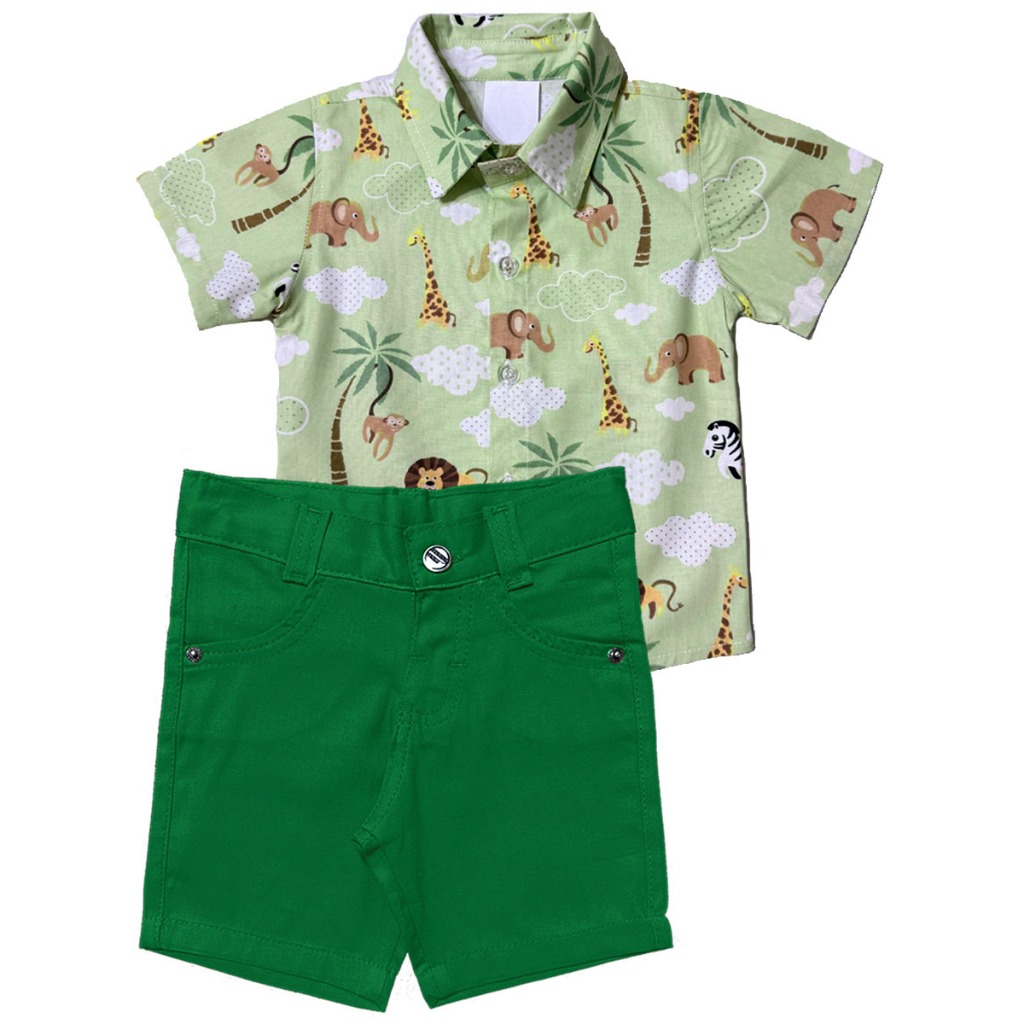 Conjunto Safari Menino Aniversátio Temático Roupa Social Infantil Verde