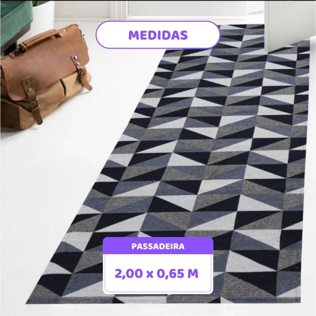 Passadeira Emborrachado 2,00x65 Geométrico Quarto/Escritório/Copa Antiderrapante Promoção