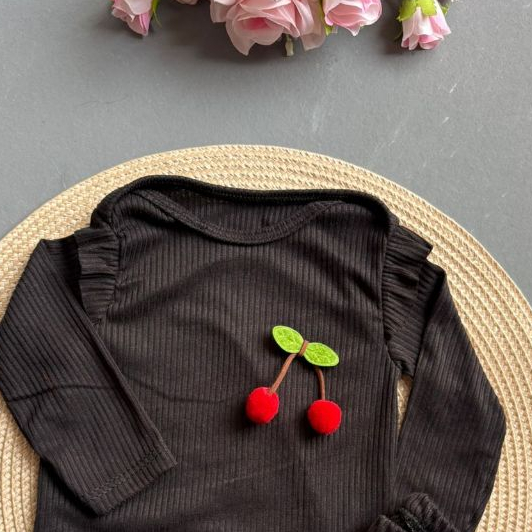 Body Cerejinha Roupa Infantil Menina Blogueirinha Mini Diva Verão Natal Manga Curta Babadinho RN ao G