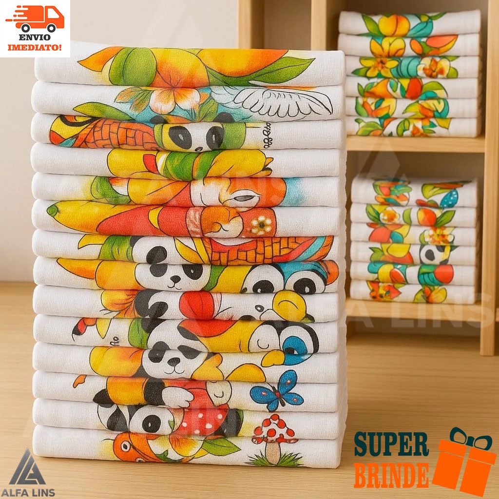 Kit 50 Panos De Prato Cozinha Simples dia a dia Estampado 100% Algodão com Bainha 37 x 61 cm