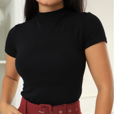 Blusa Social Feminina Gola Alta Manga Curta Viscolycra Diversas Cores Fab Propria