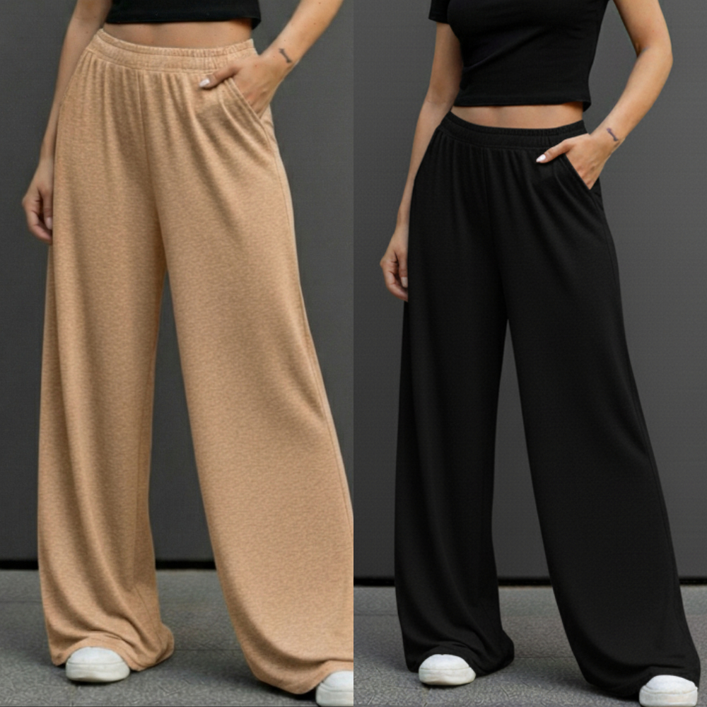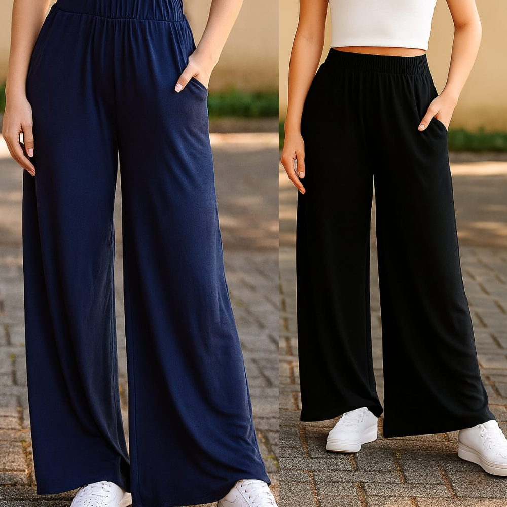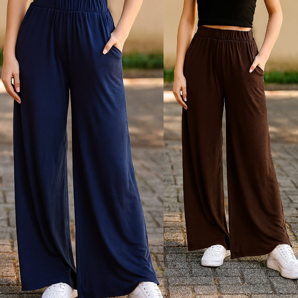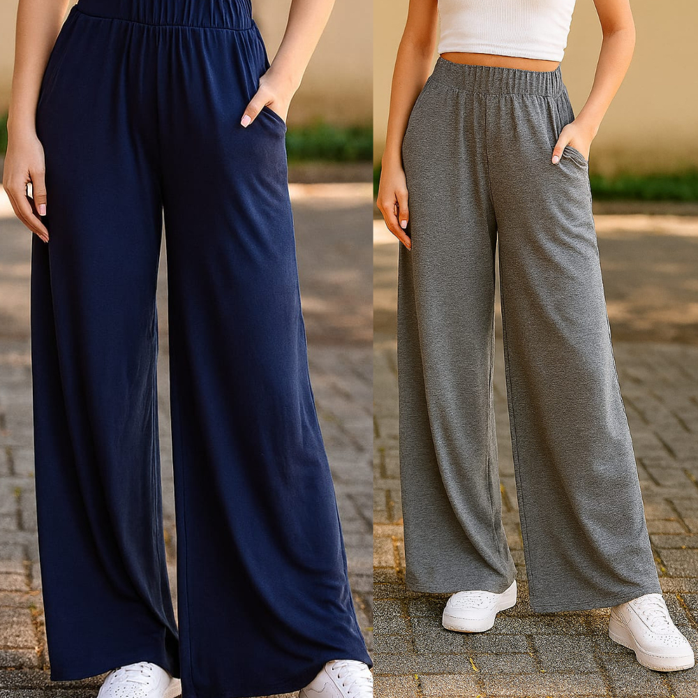 Kit com 2 Calça Pantalona Estilosa com Bolsos Grandes Calça Feminina Estilo de Alfaiataria no tecido Viscolycra
