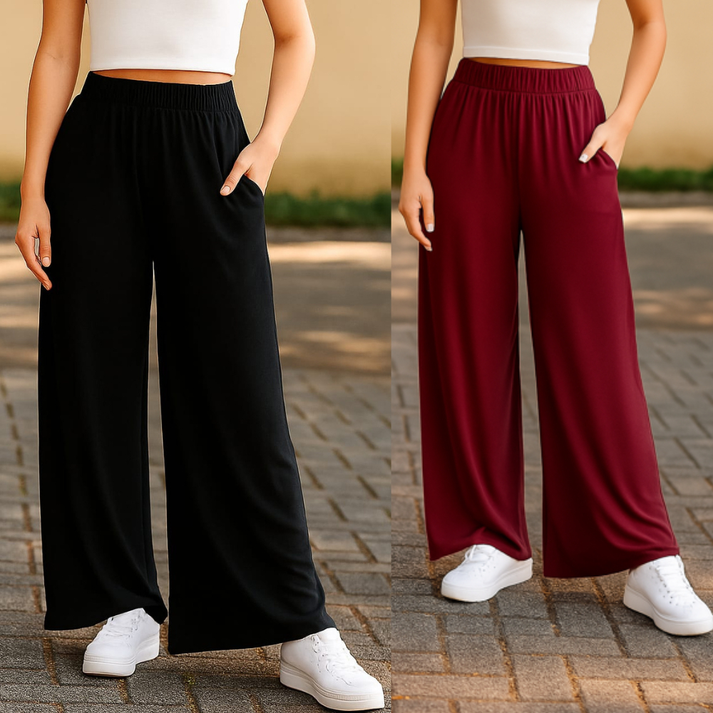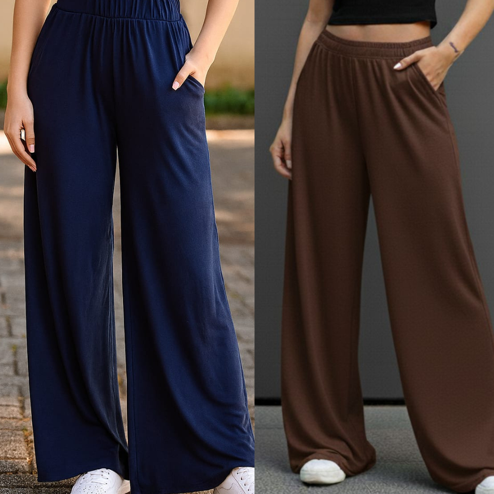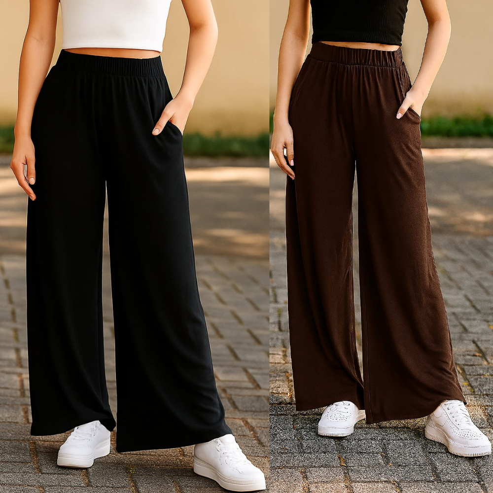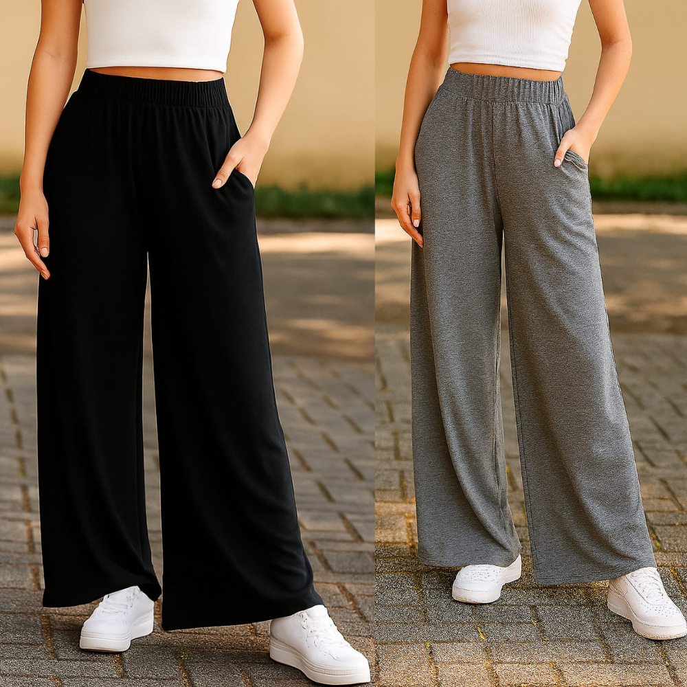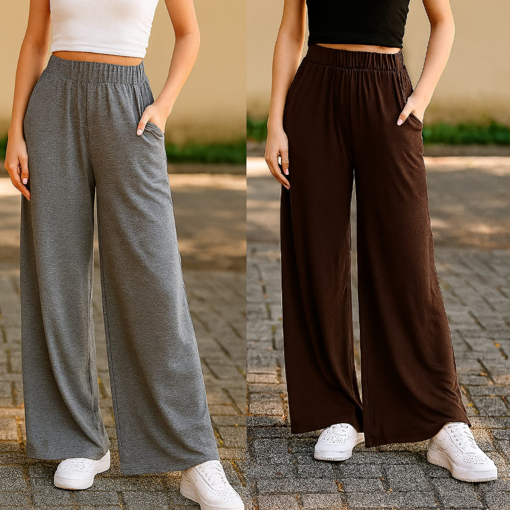 Kit com 2 Calça Pantalona Estilosa com Bolsos Grandes Calça Feminina Estilo de Alfaiataria no tecido Viscolycra