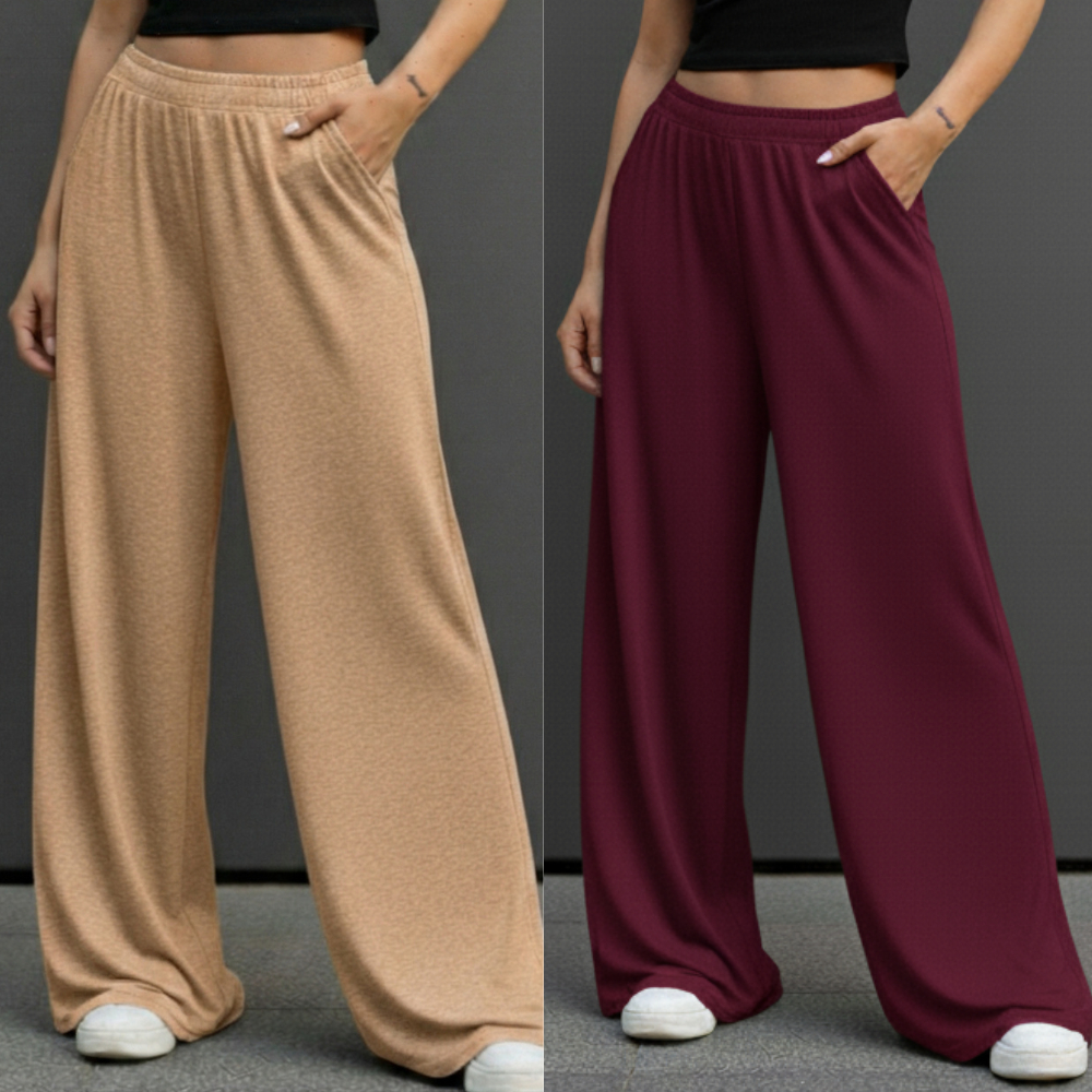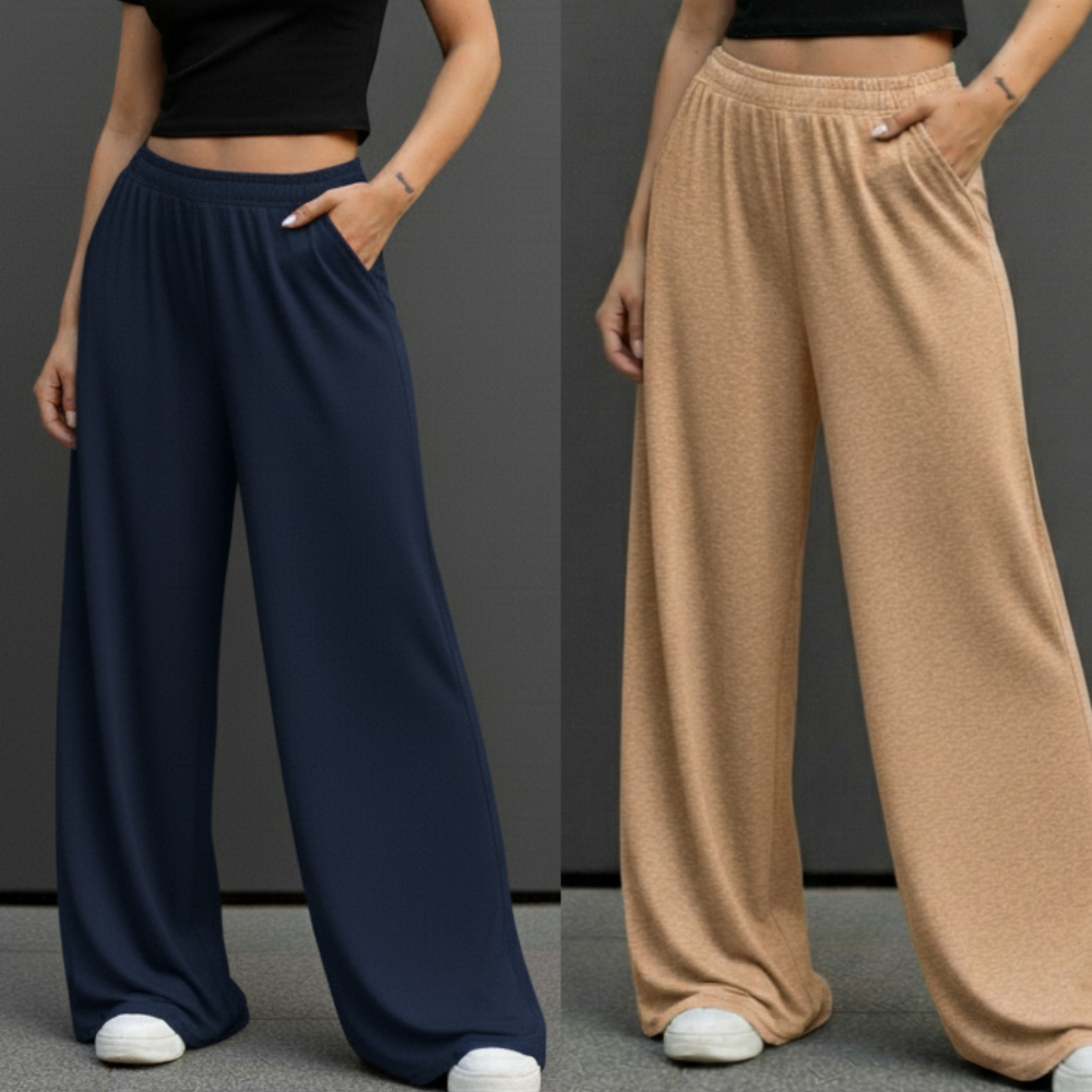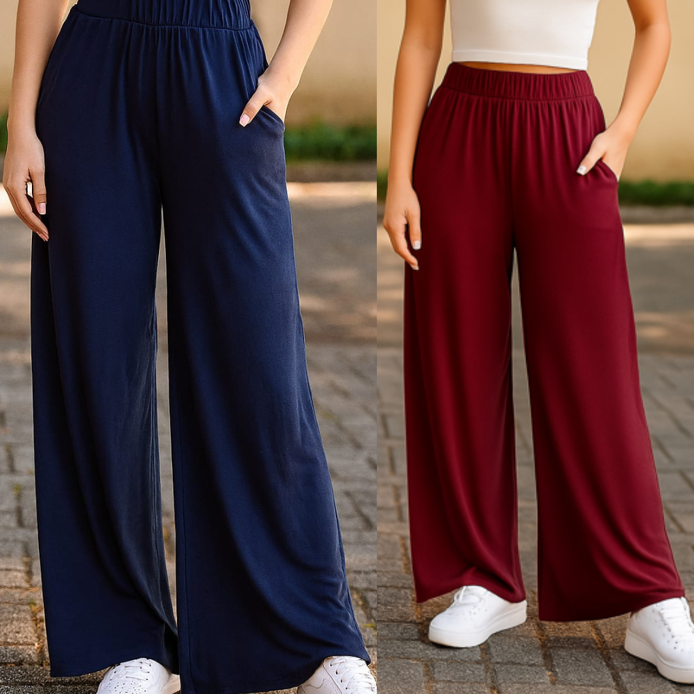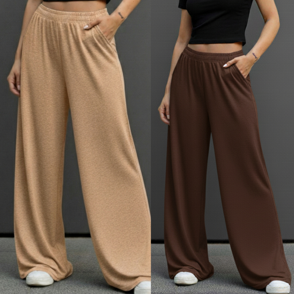 Kit com 2 Calça Pantalona Estilosa com Bolsos Grandes Calça Feminina Estilo de Alfaiataria no tecido Viscolycra