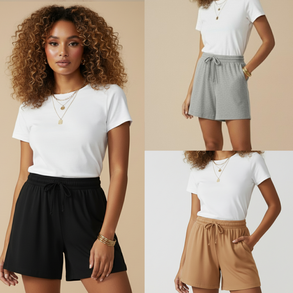 Kit 3 Short Feminino Viscolycra com Bolsos