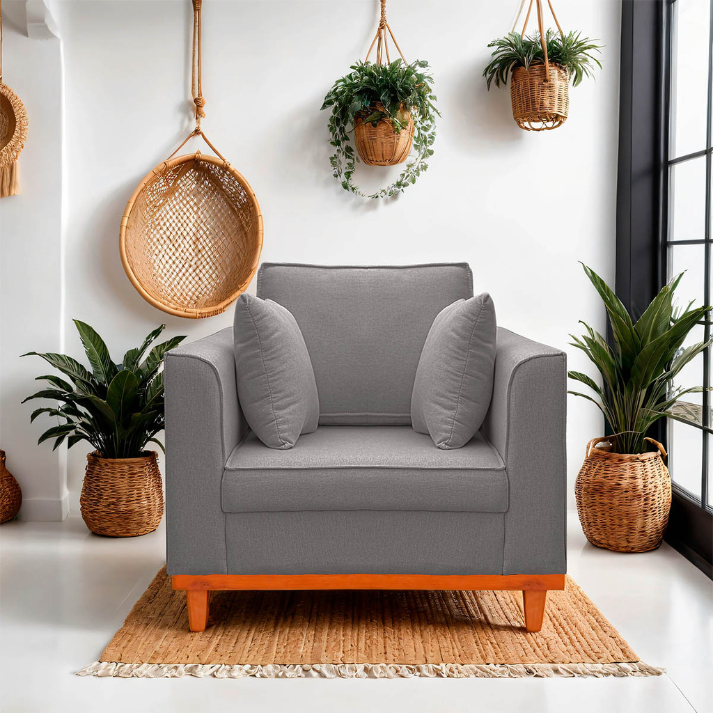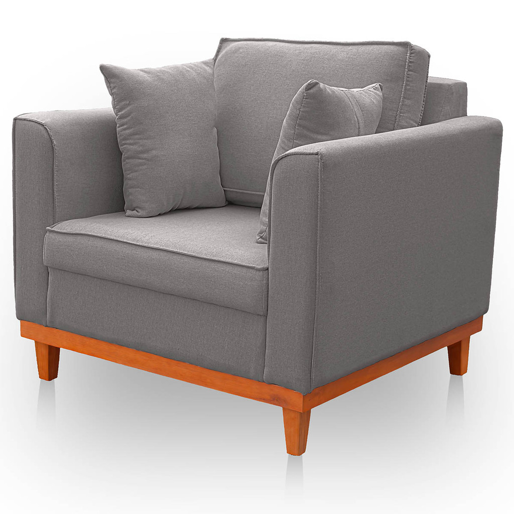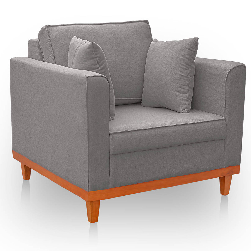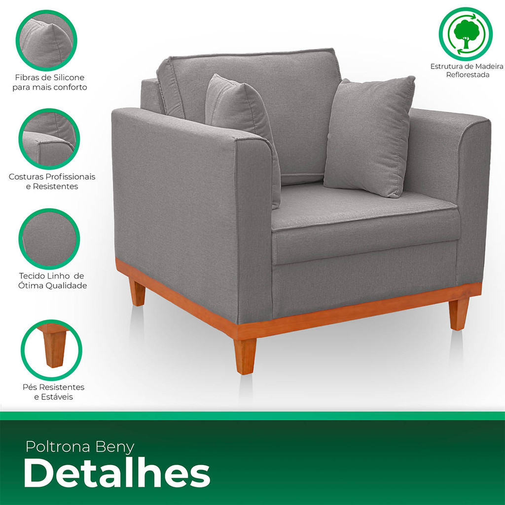 Poltrona para Sala Confortável Beny Reforçada Linho Cinza Escuro