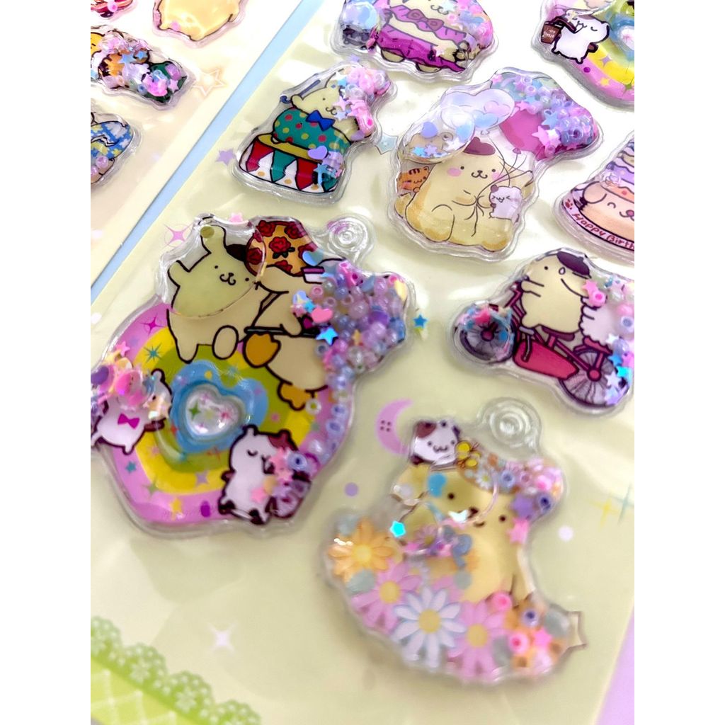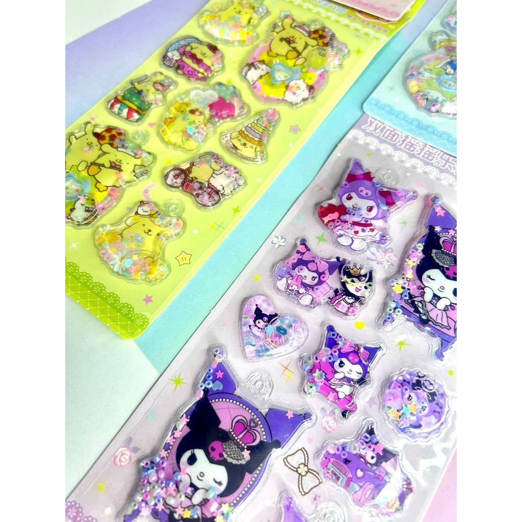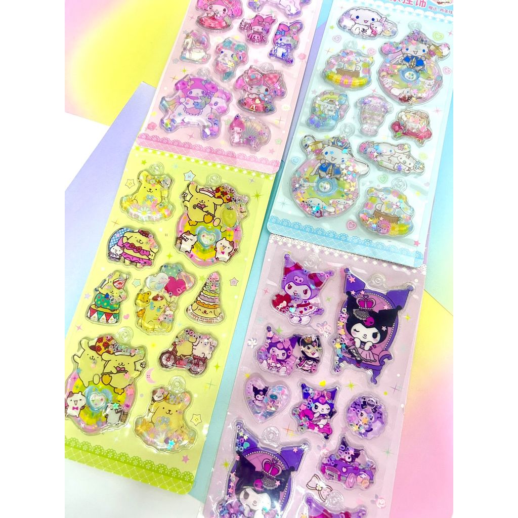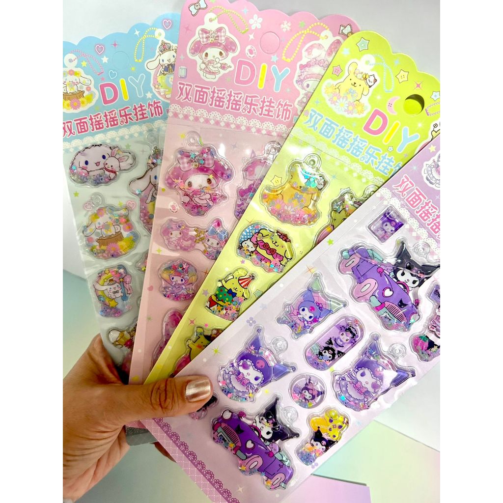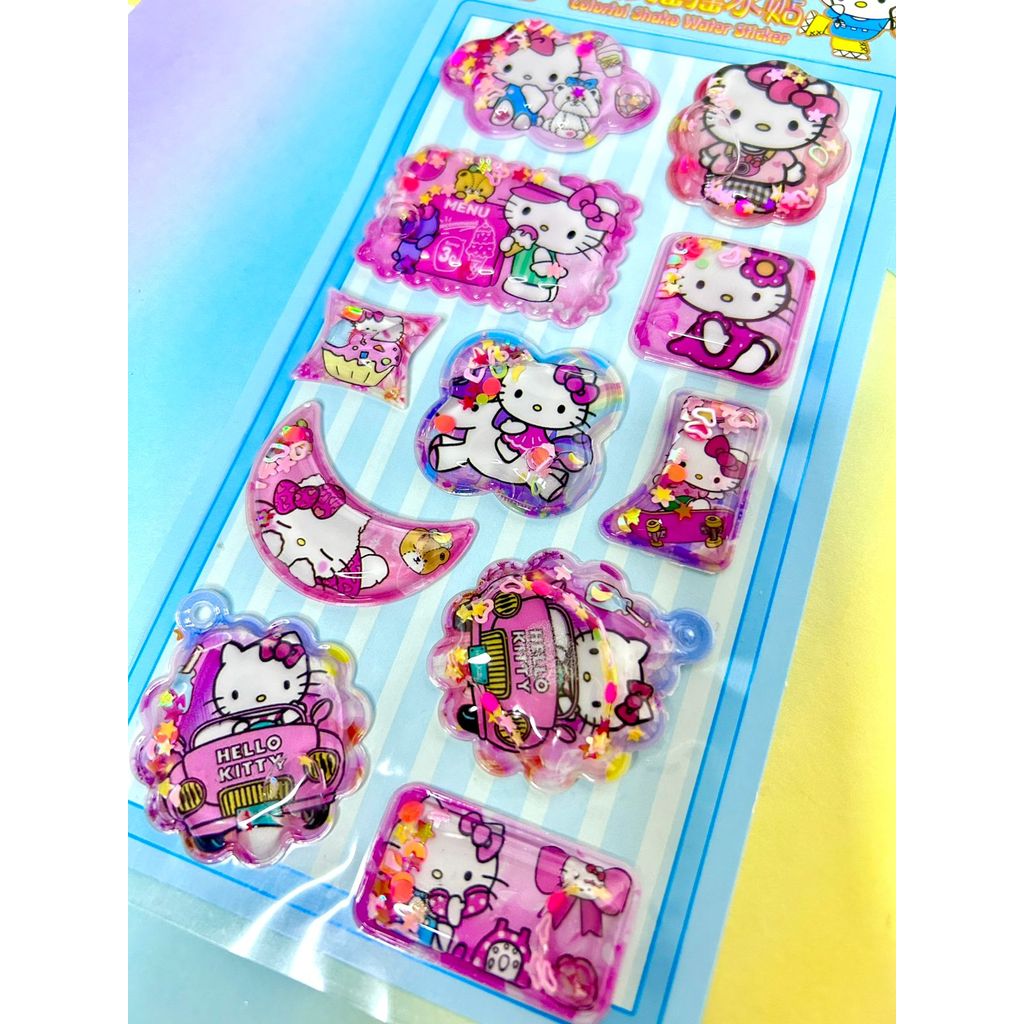 Cartela adesivos 3D com agua Shaker com chaveiro - Turma da Hello Kitty alto relevo