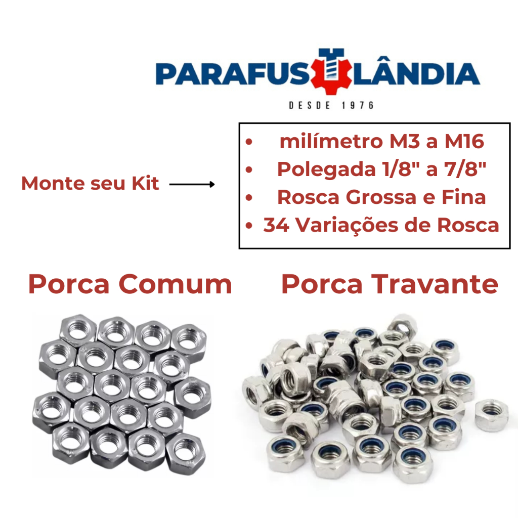 Porca Milimetro ou Polegada Sextavada Várias medidas Comum - Travante com Nylon M3 a M16 e 1/8 a 7/8