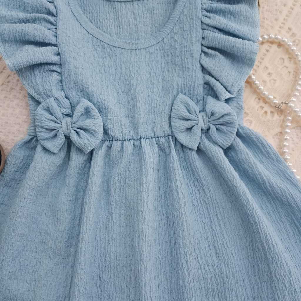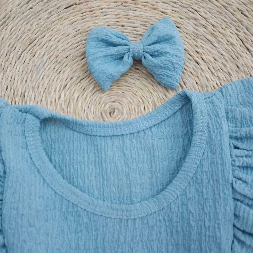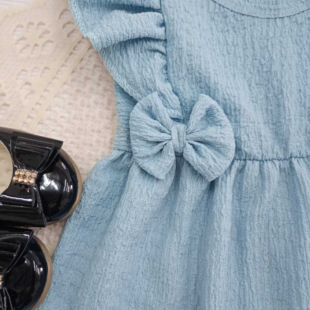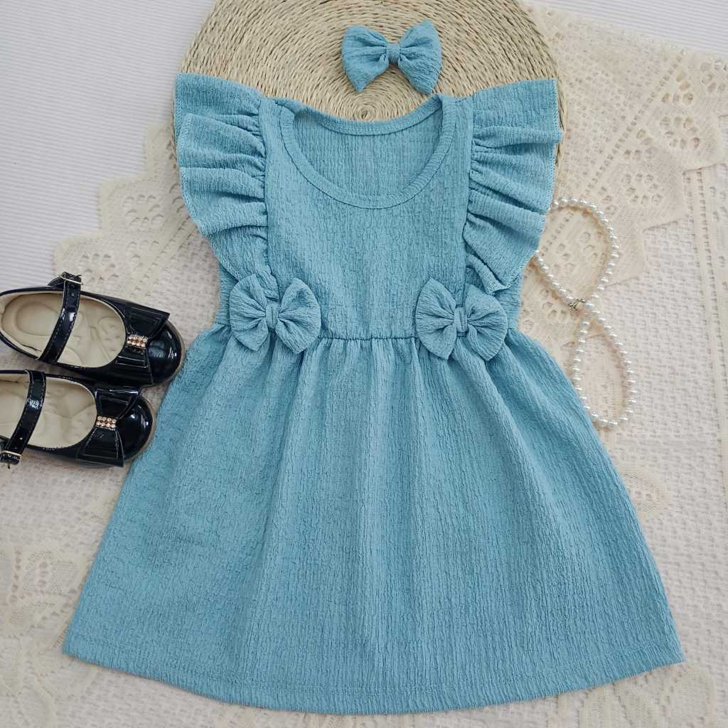 👶🎀 Vestido Azul Infantil Menina Bebê Criança com Laços + Laçinho de Cabelo | Confortável