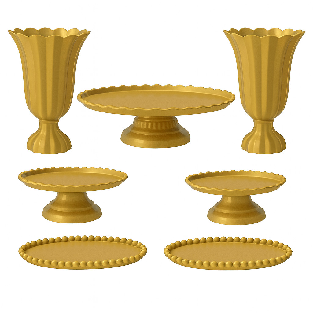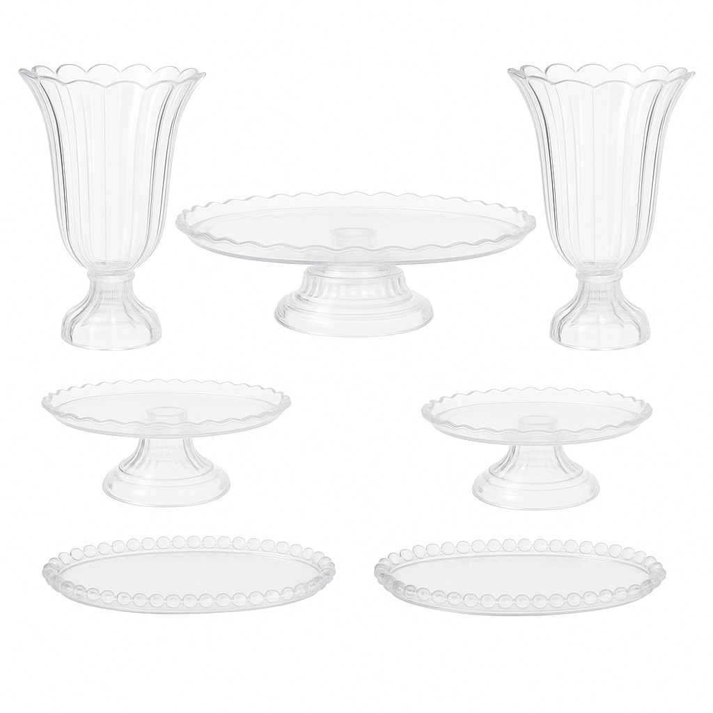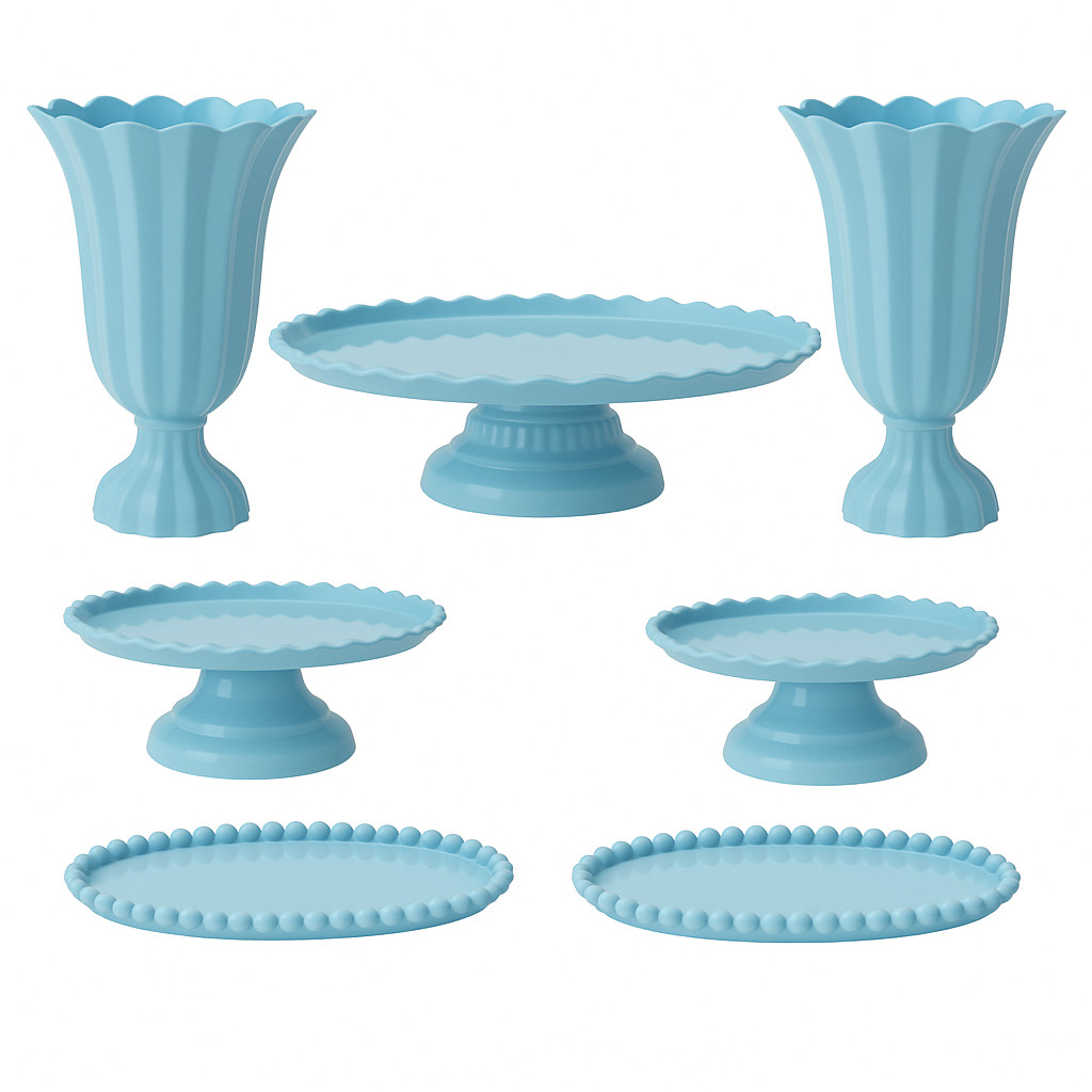 Kit Decoração de Mesa Aniversário Completo Festa 1 Boleira 2 Vasos 2 Mini e 2 Bandejas 7 Peças