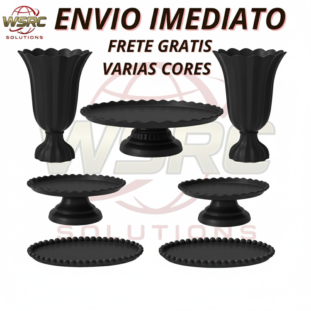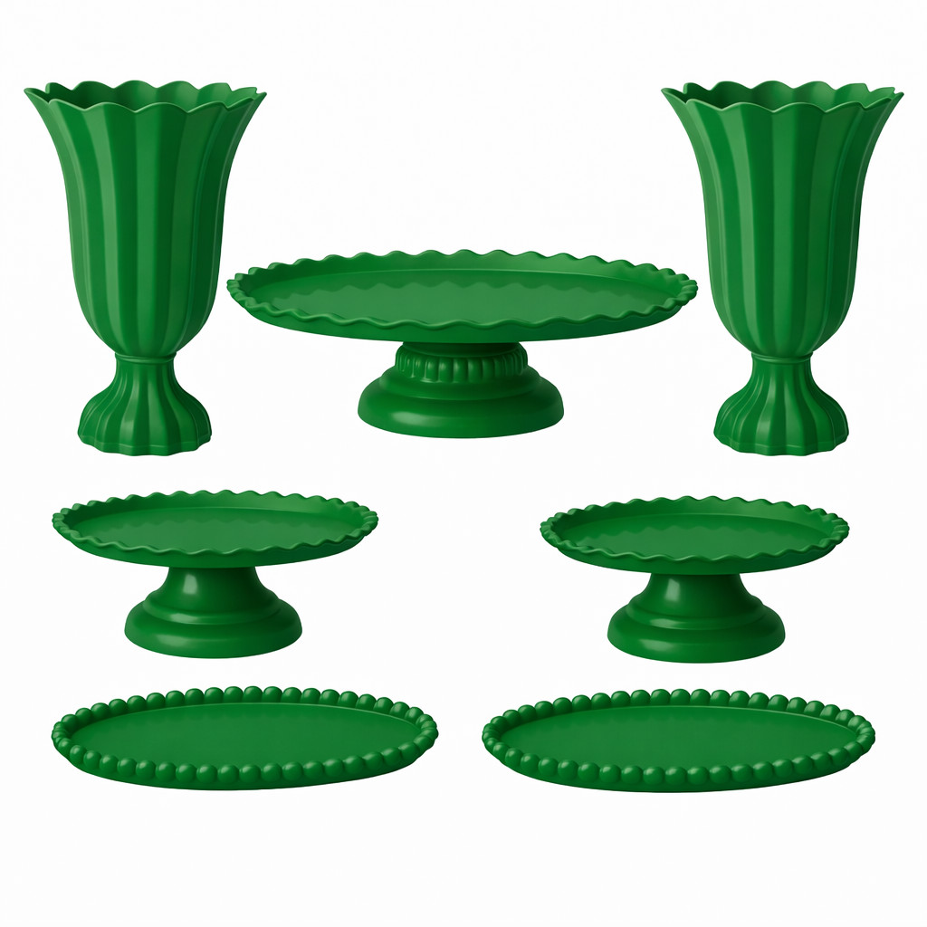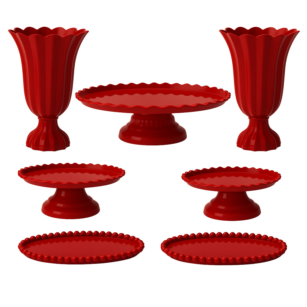 Kit Decoração de Mesa Aniversário Completo Festa 1 Boleira 2 Vasos 2 Mini e 2 Bandejas 7 Peças