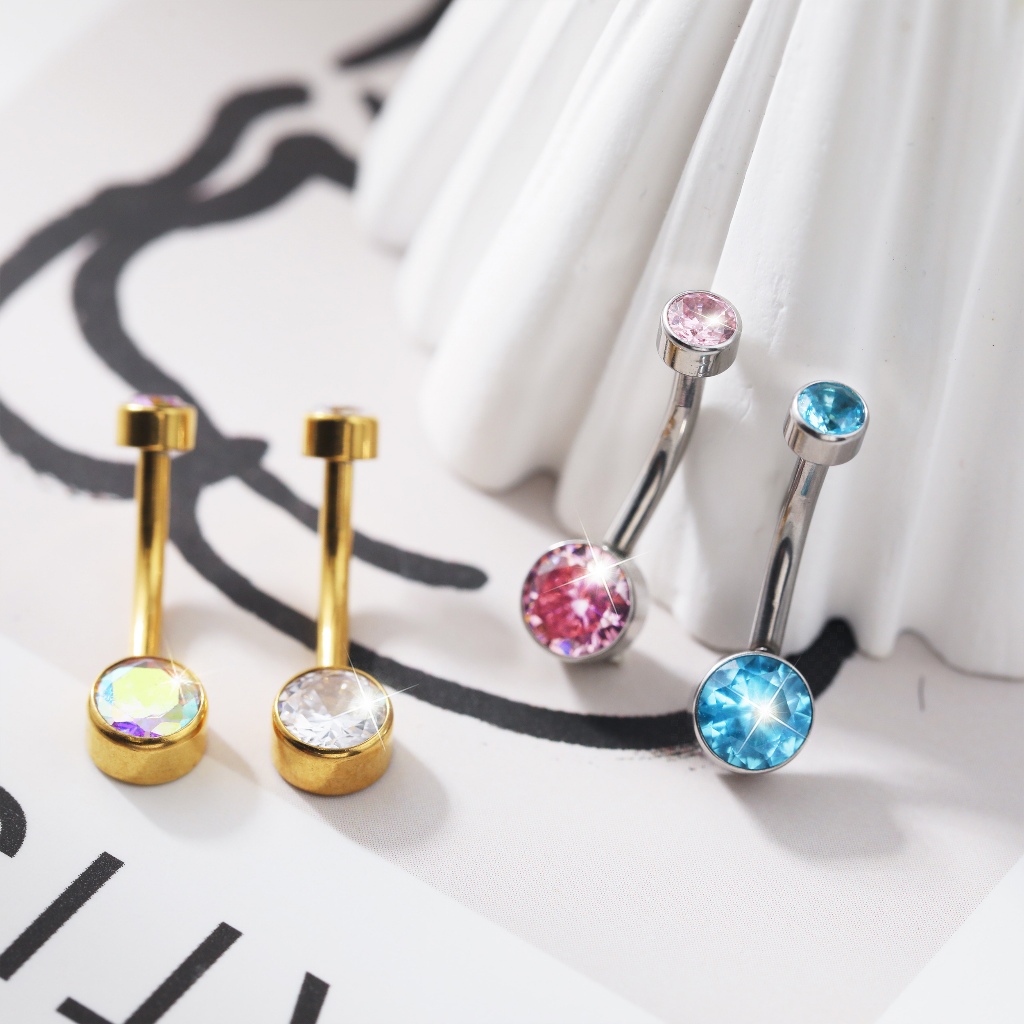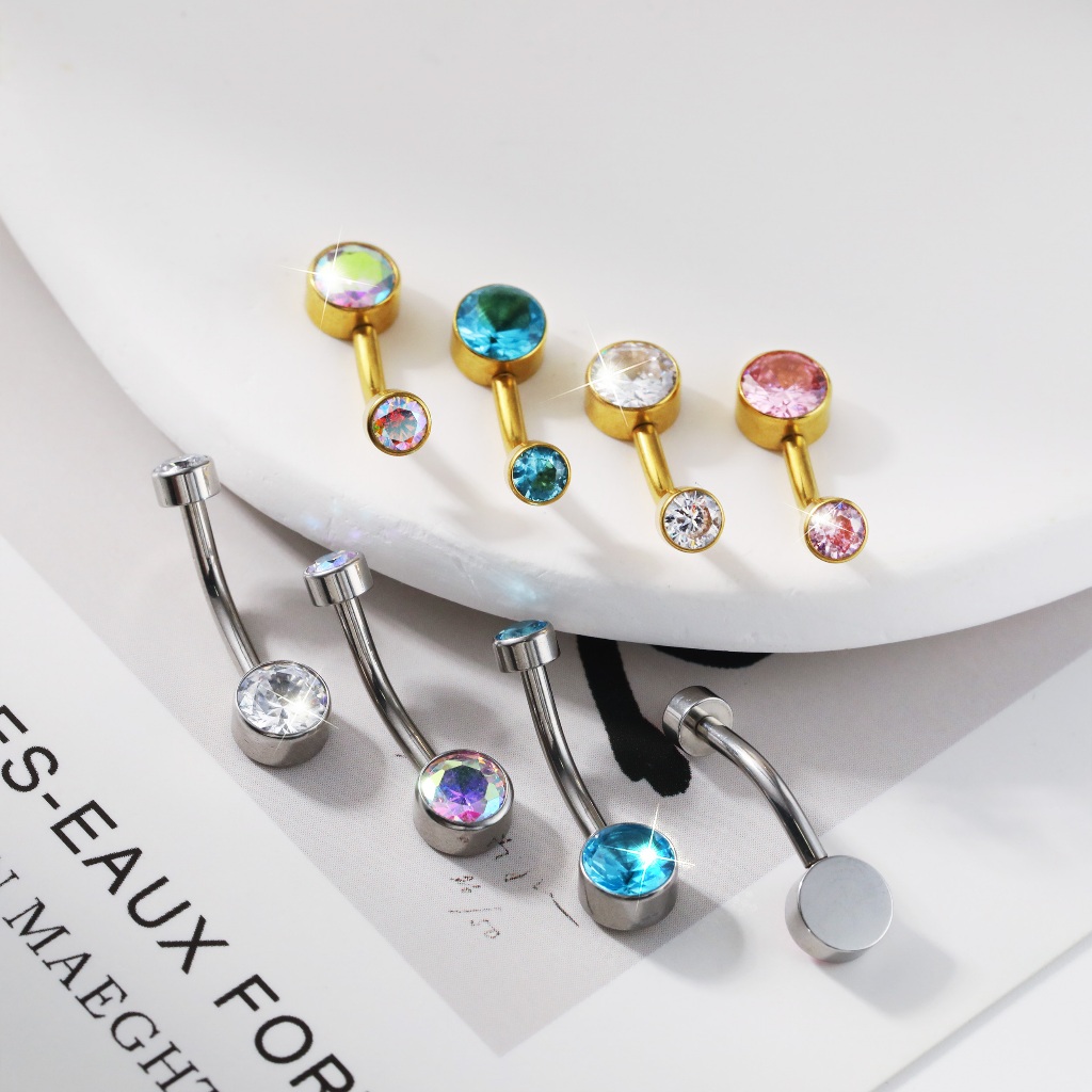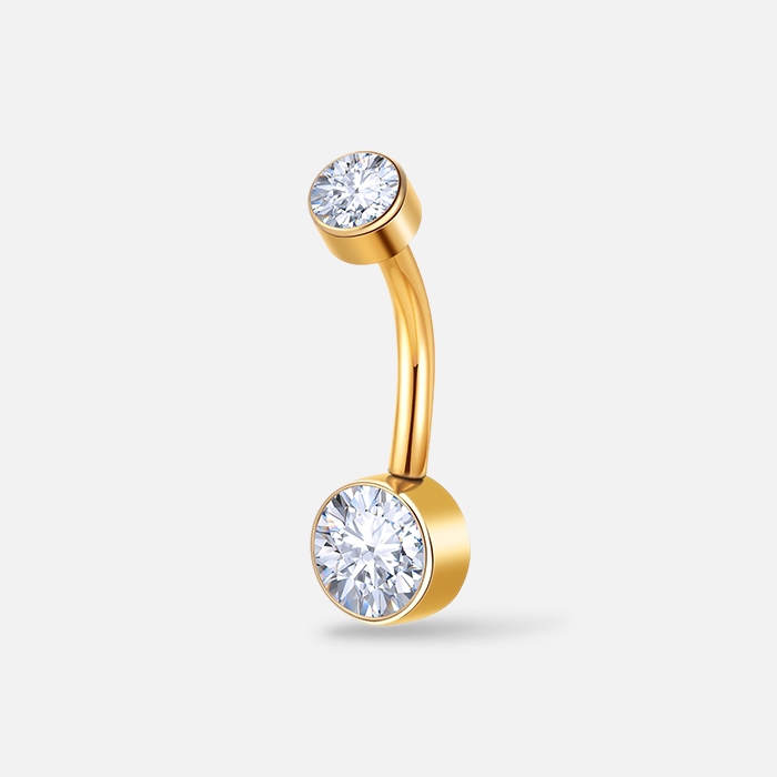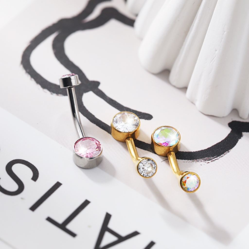 Piercing Umbigo Banana Titânio 2 Pedras Zircônia umbigo