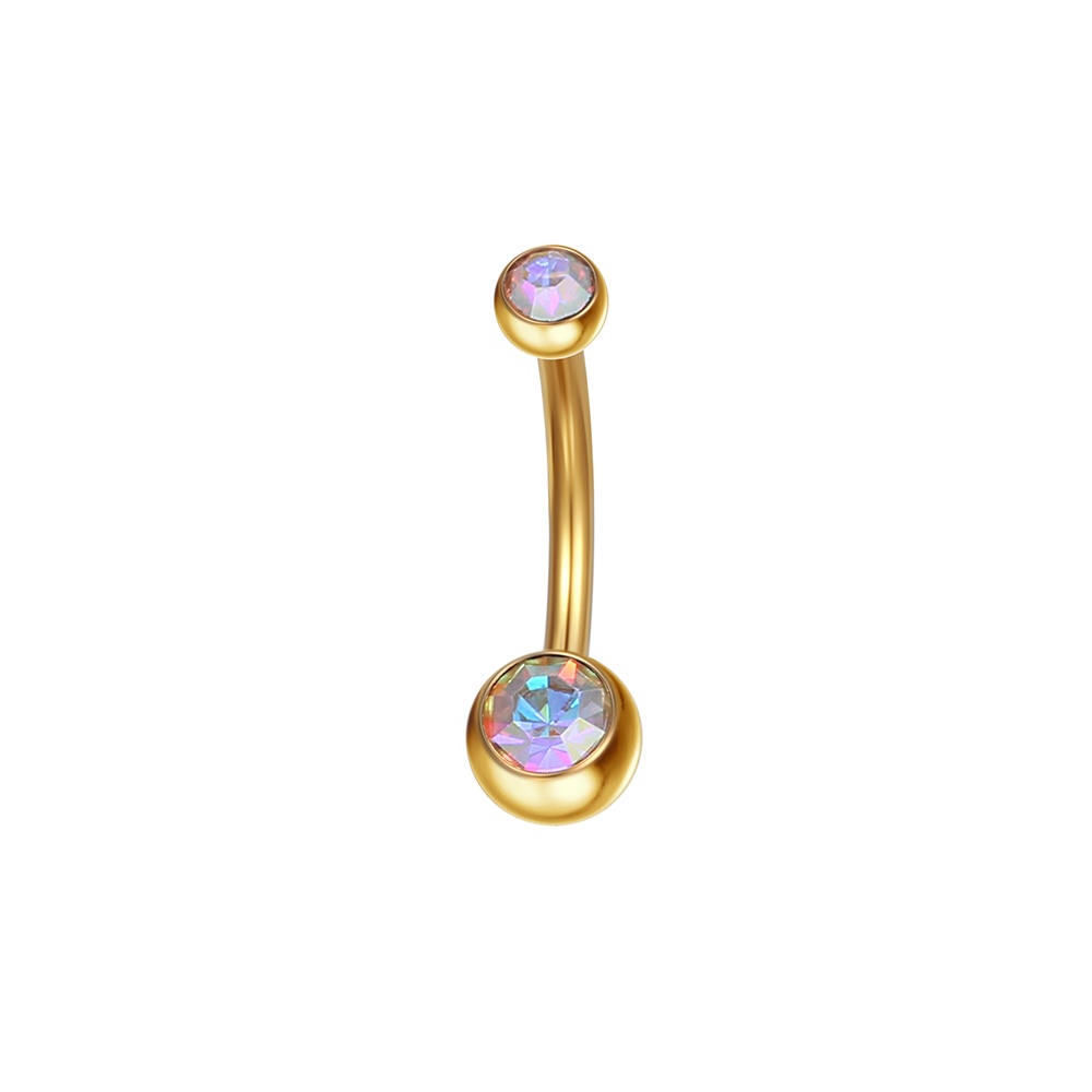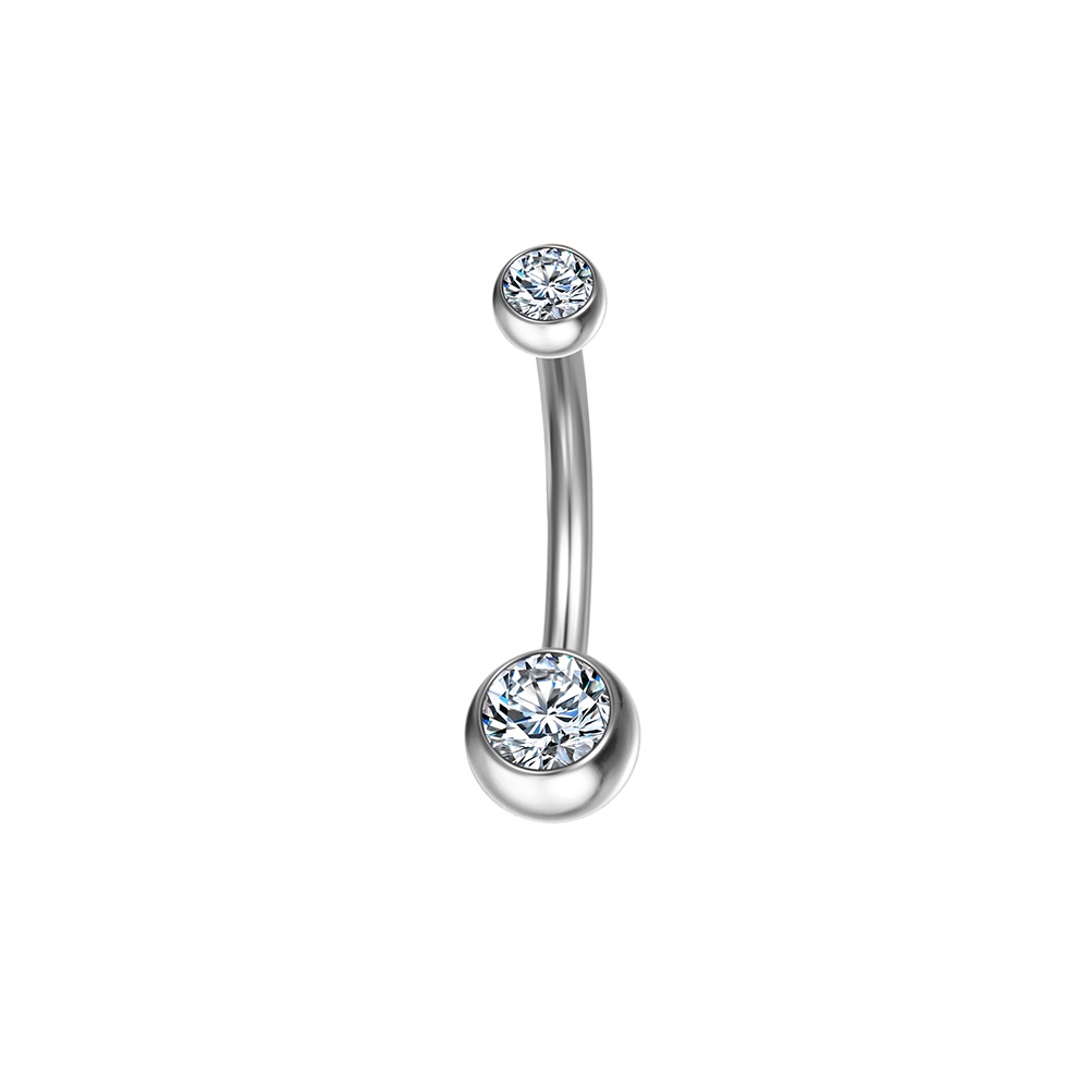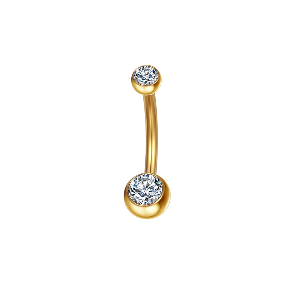 Piercing Aço Cirúrgico Umbigo Duas Zircônias | Banana Piercing de Umbigo Pequeno Delicado