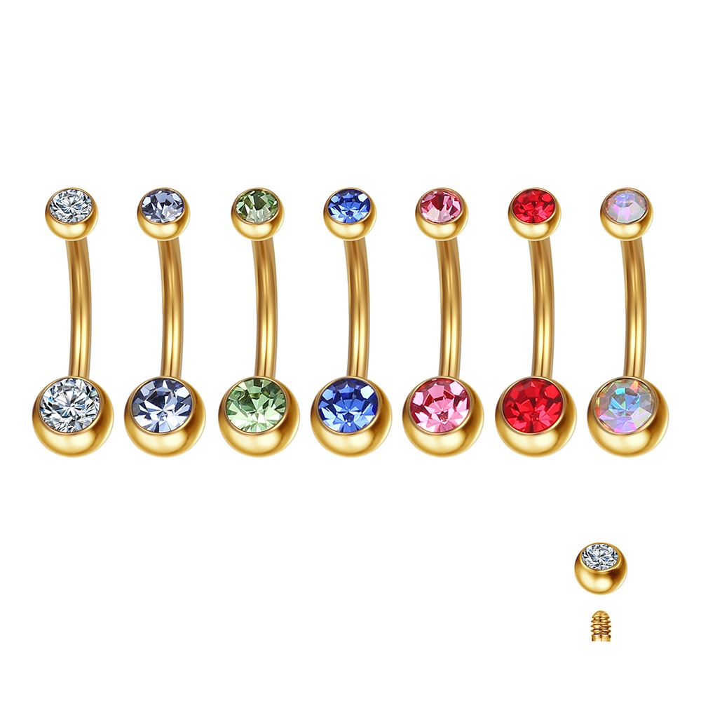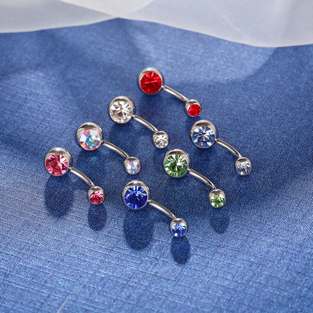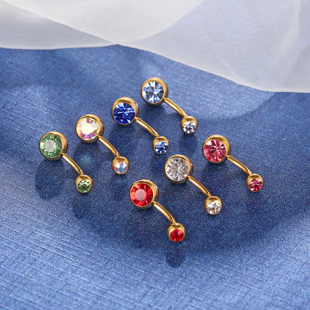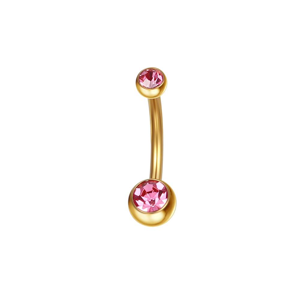 Piercing Aço Cirúrgico Umbigo Duas Zircônias | Banana Piercing de Umbigo Pequeno Delicado
