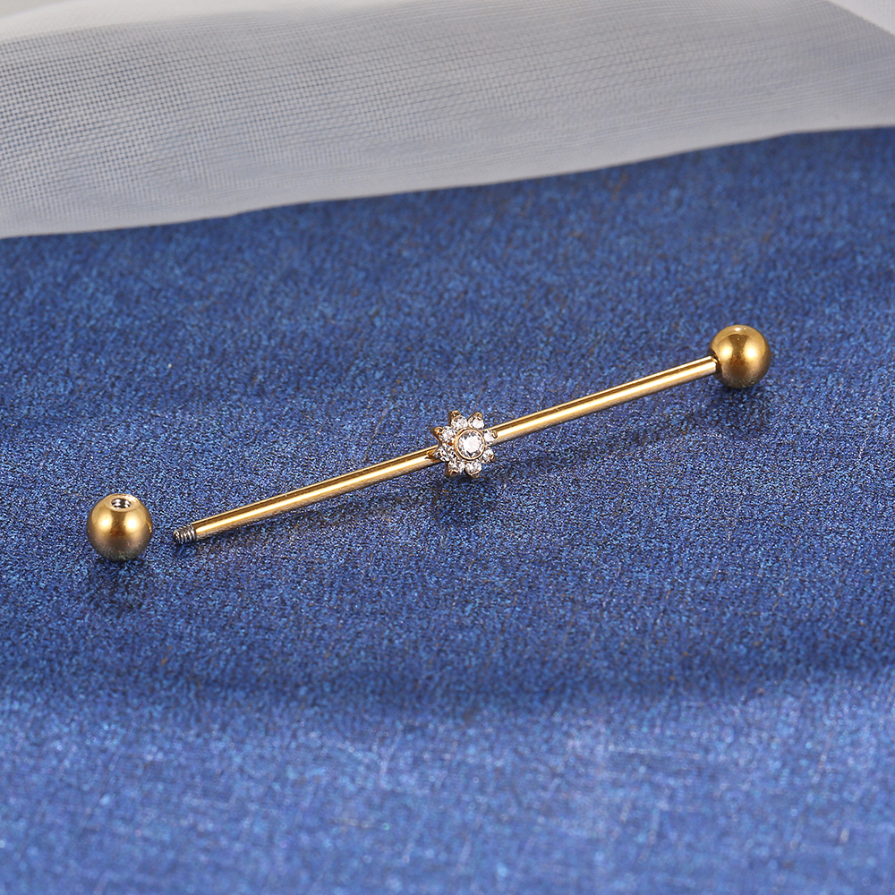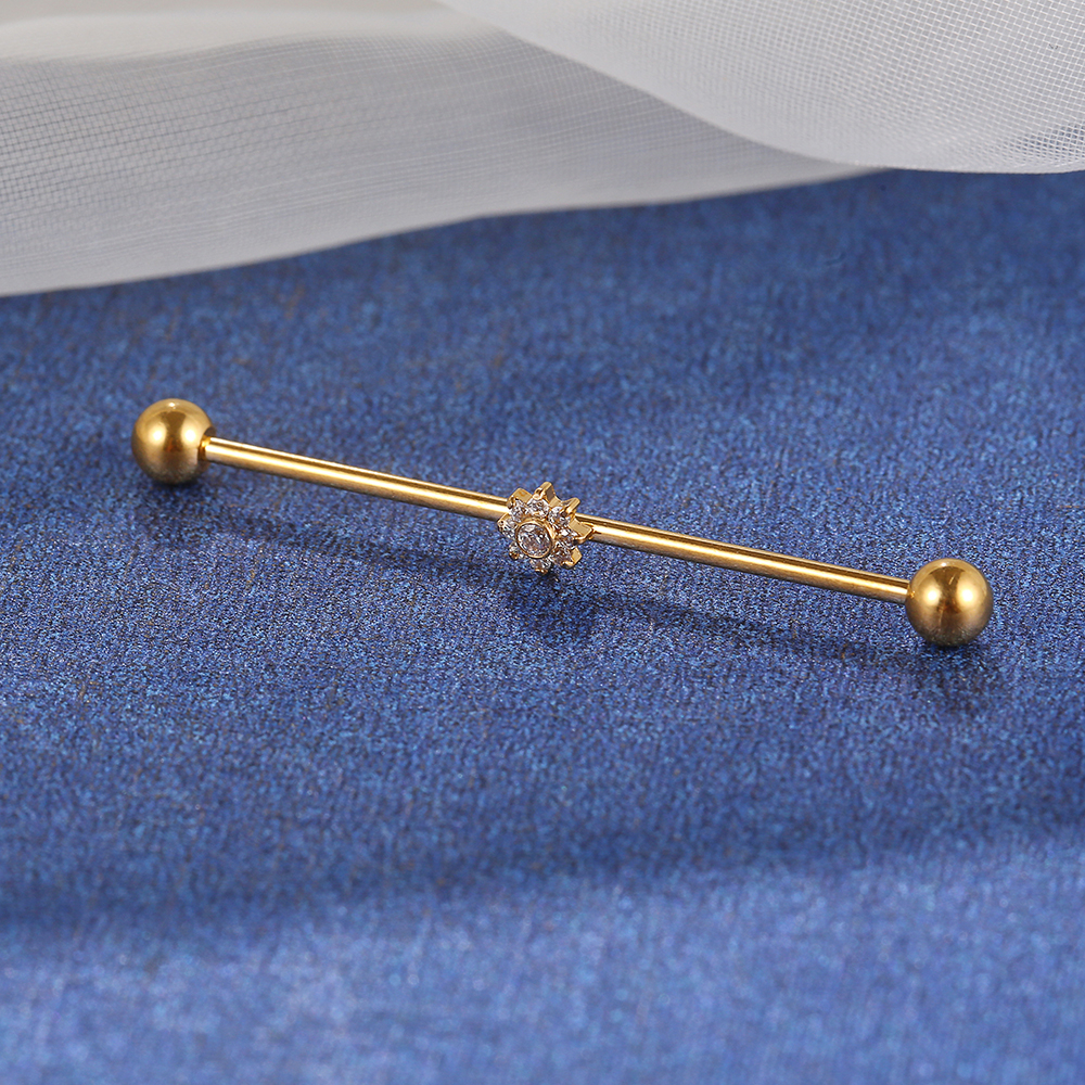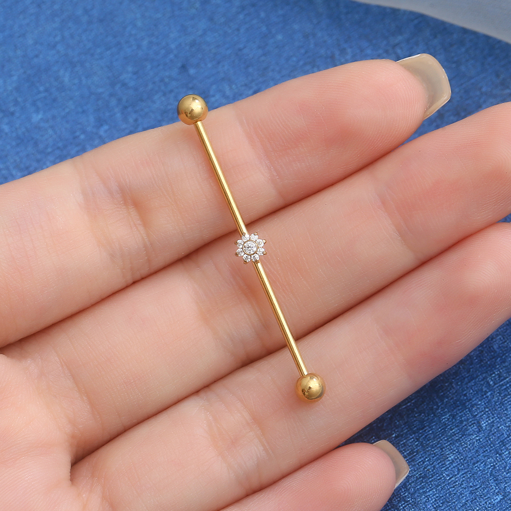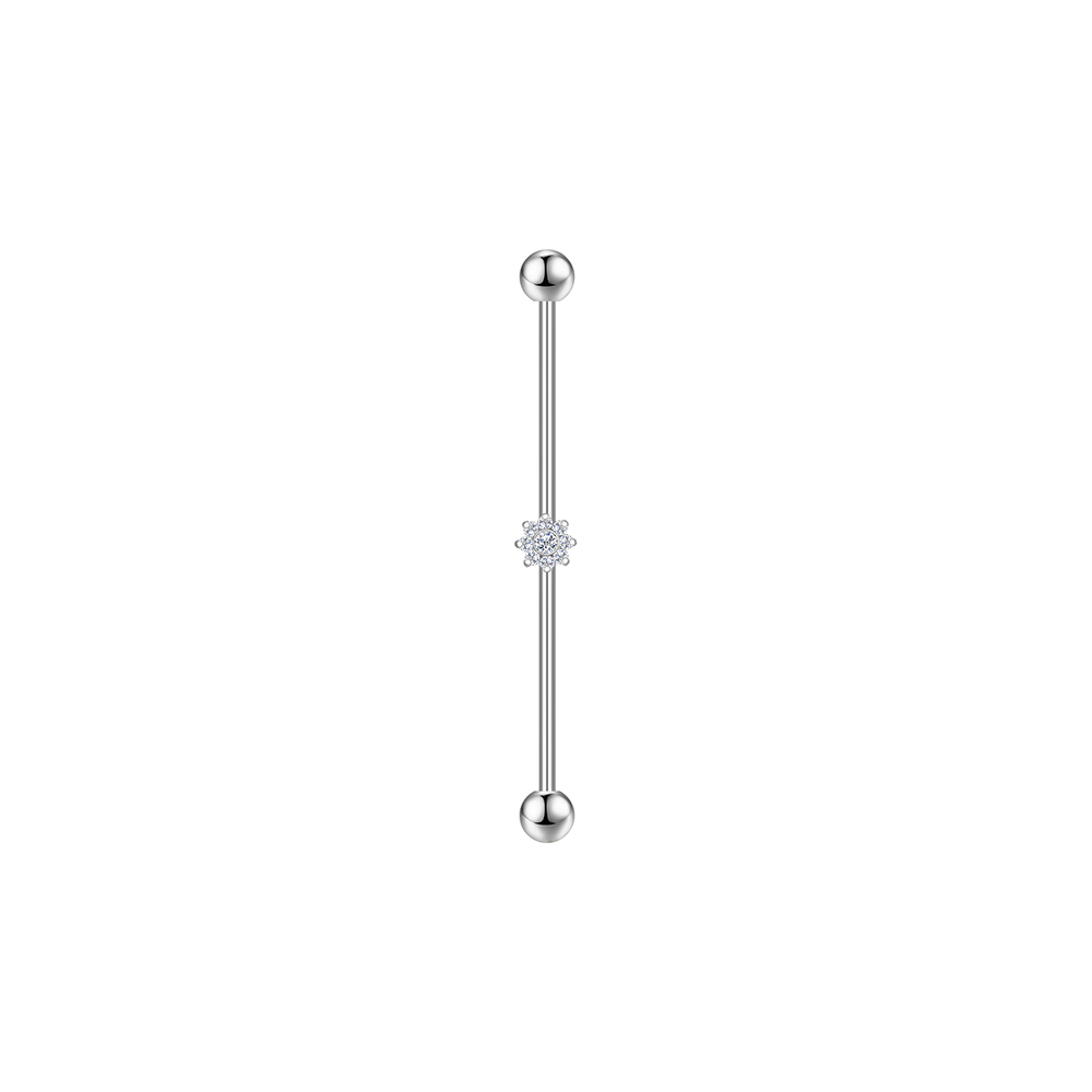 Piercing Transversal em Aço Cirúrgico com Revestimento PVD e Mini Flor de Zircônia